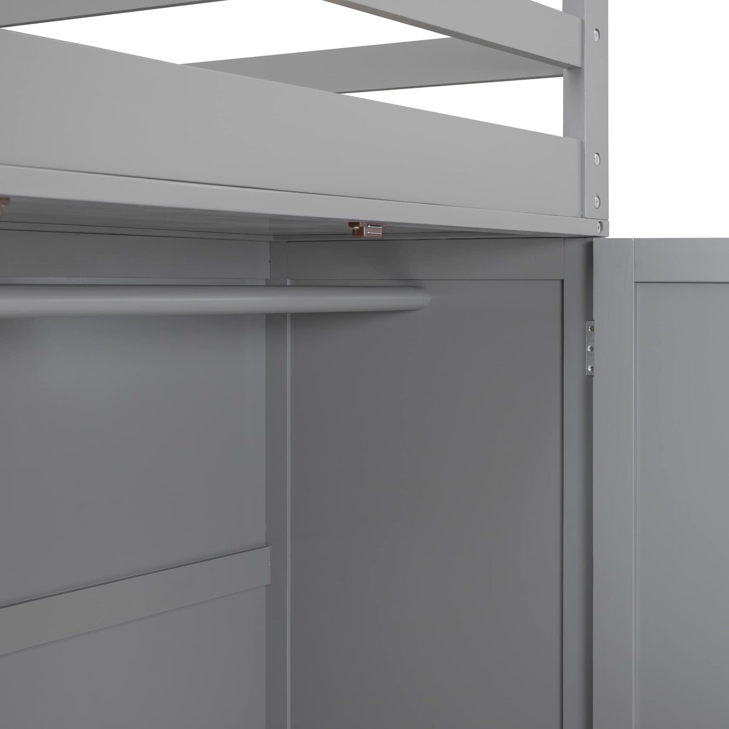 - 【Full Loft Bed with Wardrobe】 This Modern Style Loft Bed with a large storage wardrobe, The wardrobe comes with a pole in it. It provides extra space to hang your clothes. There is a small shelf at the head of the bed where you can keep some small items. Overall Product Dimension: 78.3"L x 56.7"W x 65"H, this Full size loft bed Suitable for standard Full size mattress (Mattress is not included)
