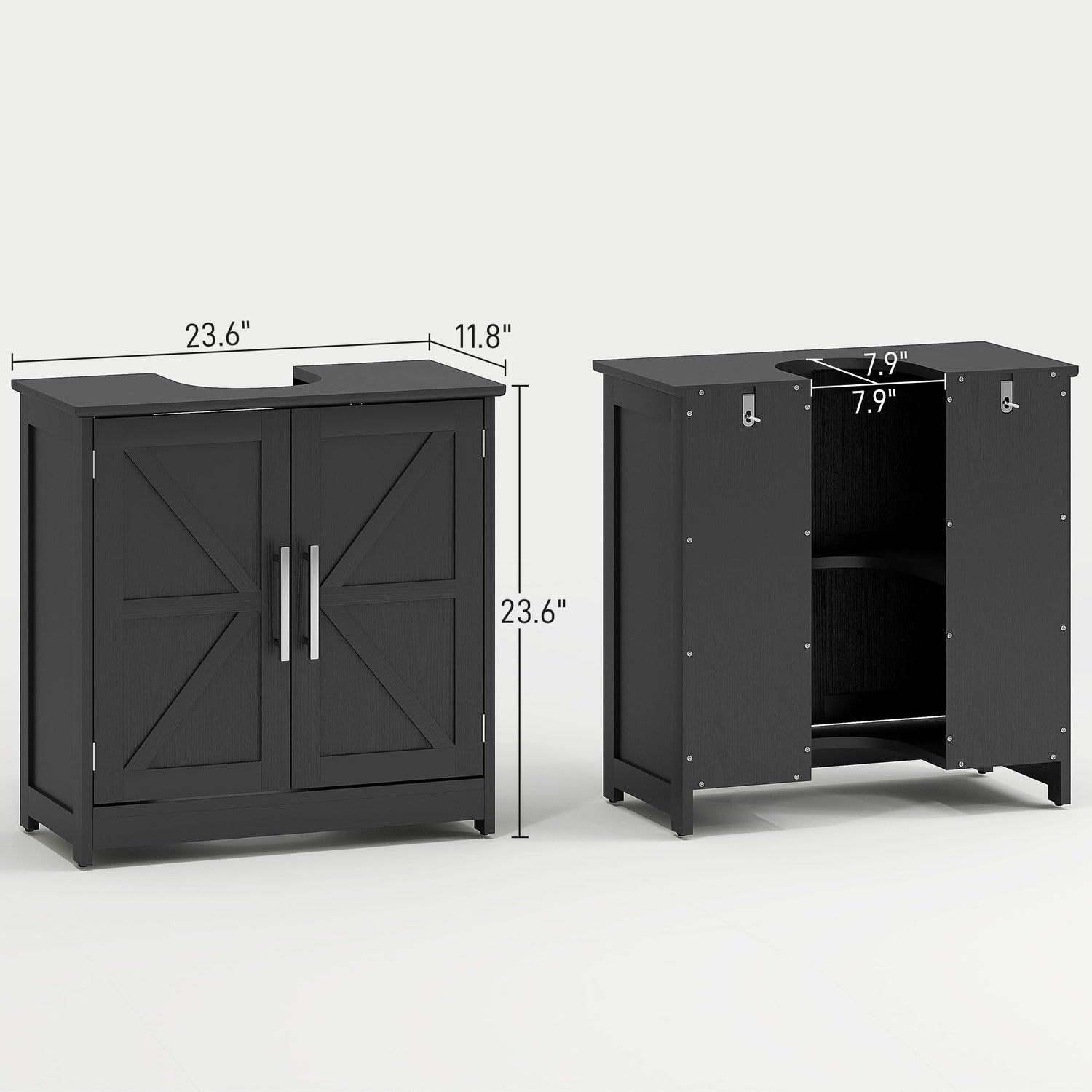 - Farmhouse Charm: This under sink cabinet brings cozy, rustic vibes to your bathroom. The charming barn doors and stylish black metal handles create a warm look that perfectly blends farmhouse elegance with everyday functionality