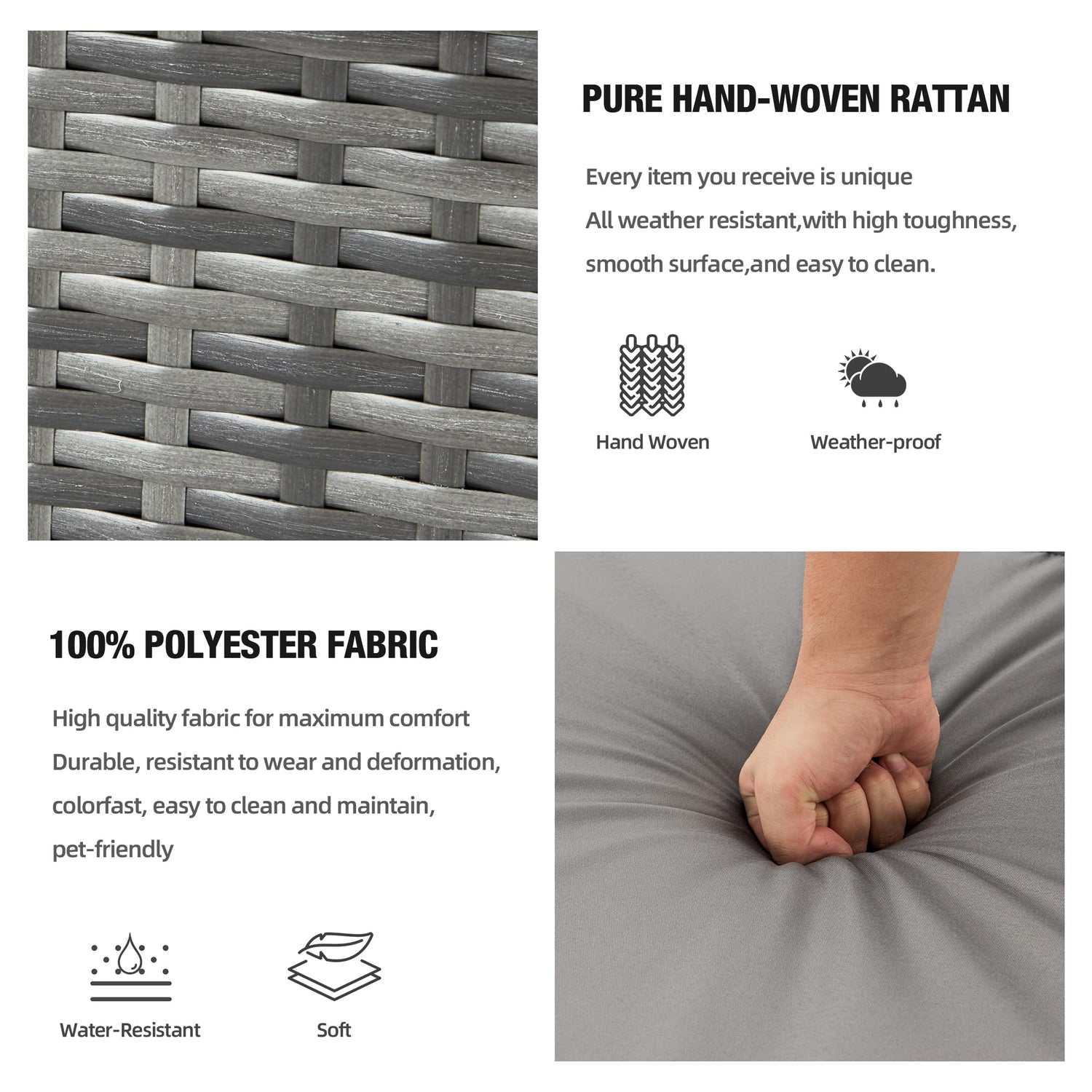 • High-Quality Material - The overall structure consists of two important parts: stainless steel frame structure and durable wicker. The sturdy stainless steel frame is made of coated sturdy metal, which provides reliable stability; the PE rattan is made of synthetic handmade wicker, which is more durable and firm than other rattans of different craftsmanship. Make sure our sofa sets can be used for a long time.