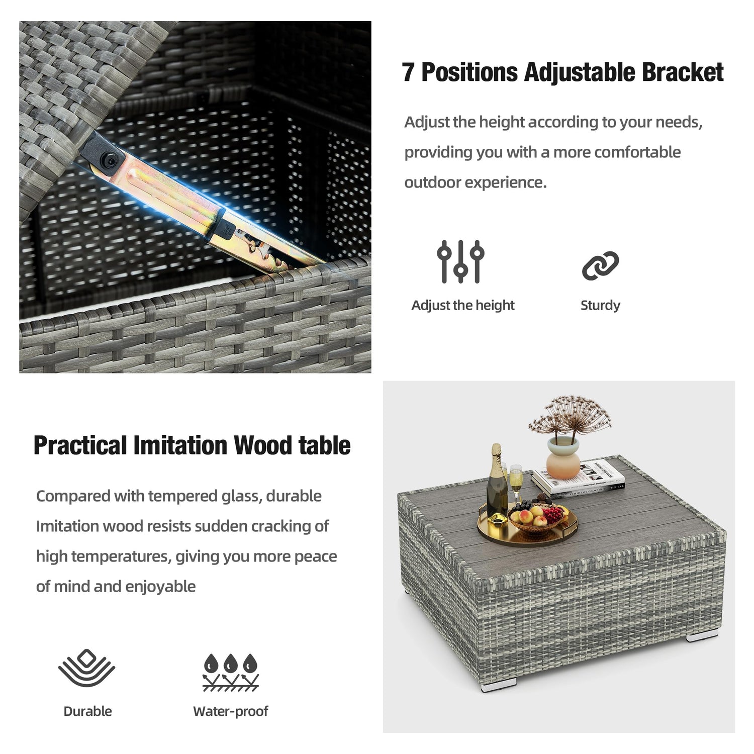 • Adjustable Backrest Design - We made a special design for this patio sectional sofa set, upgrading the corner sofa to an adjustable backrest design. From an ergonomic point of view, 5 different gears are designed. You can adjust it to different angles according to your needs.The chair can become a lounger, chaise or bed, allowing you to freely enjoy afternoon tea time.