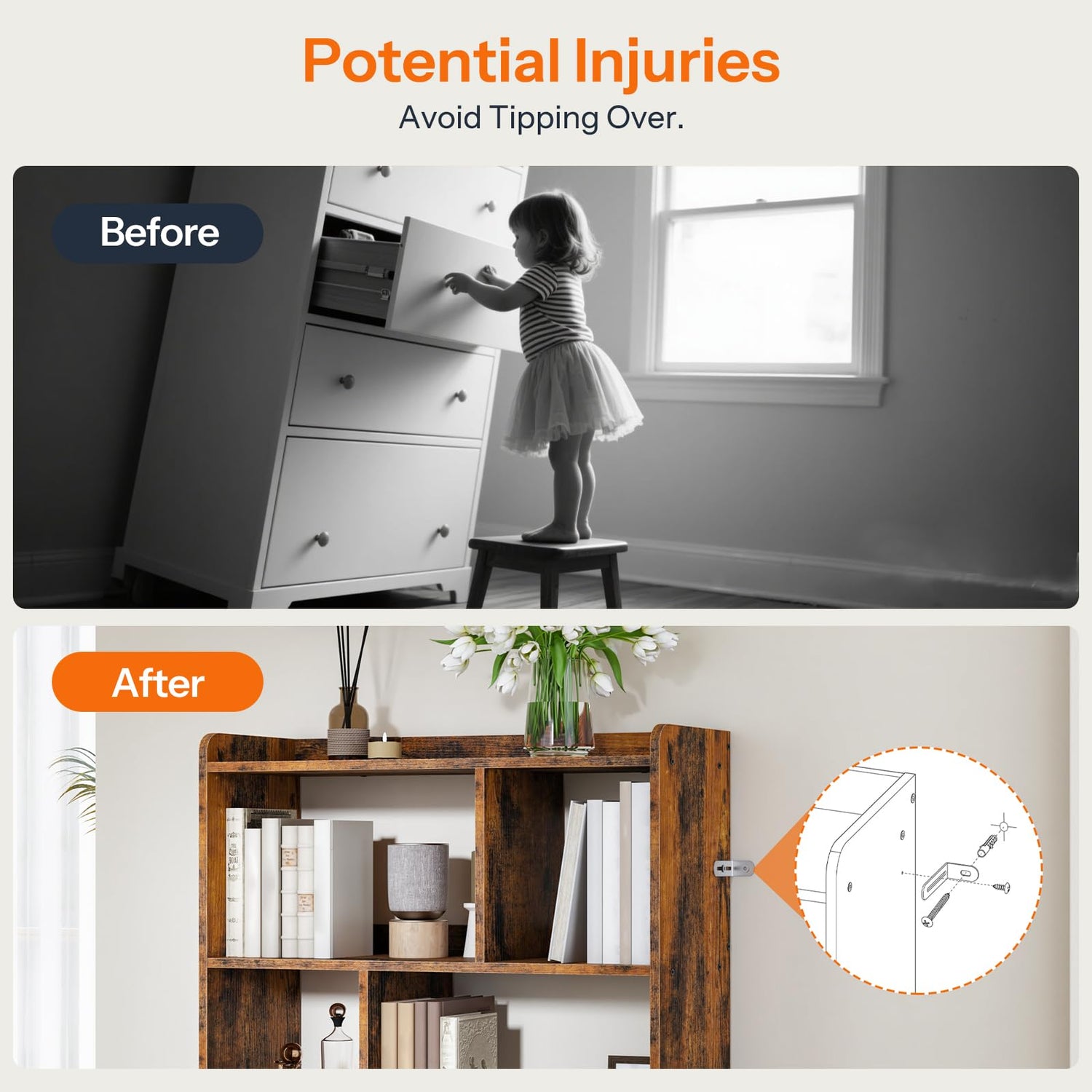 - Built to Last: Crafted from premium particleboard and supported by 4 metal legs with anti-slip tube plugs, this brown bookshelf ensures a robust structure. The included anti-tip kit enhances stability, with an overall weight capacity of 220 lb for your items