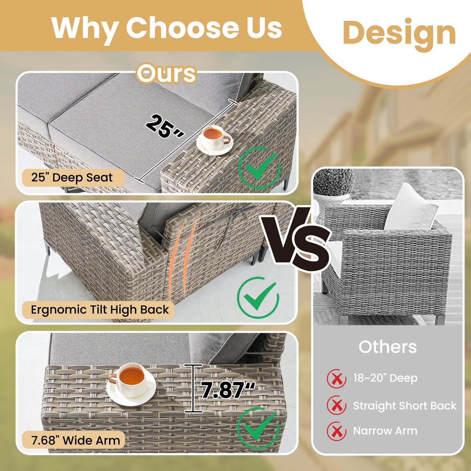 - All Weather & Durable: Selected anti-ageing treated thicken PE wicker rattan for UV resistant, wear resistant and all weatherproof. 3D strengthen and widen design for extended service life,twice service life as others