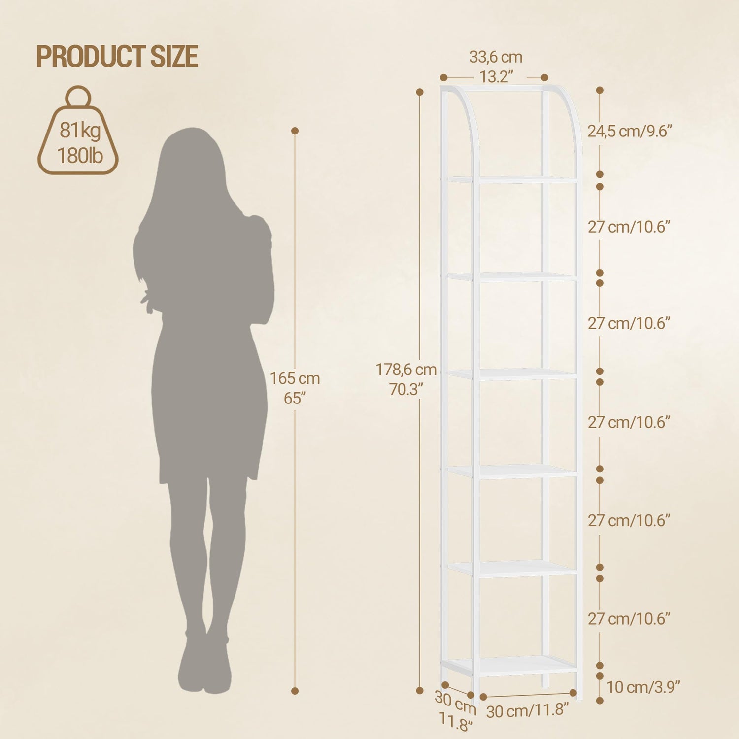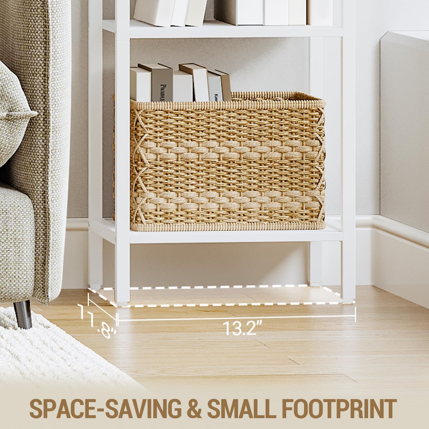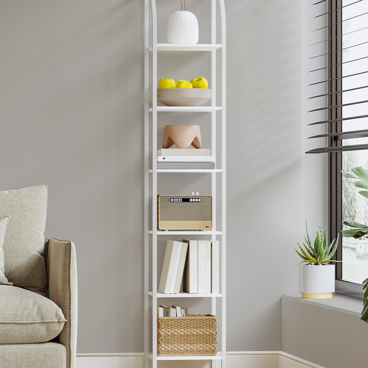 - Space saving: The bookshelf measures 13.2 × 11.8 × 70.3 inch, the narrow bookshelf provides you with vertical storage space, saves space and organises things better. Suitable for living room, bedroom, study, balcony, kitchen, etc.