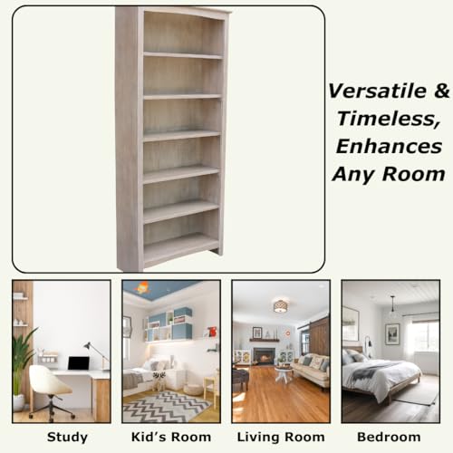 IC International Concepts Shaker Bookcase Solid Real Wood, Sturdy Parawood, 72 Inch, Washed Gray Taupe