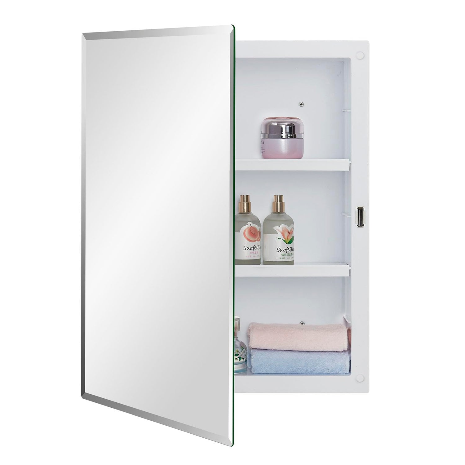 IDYLLOR Plastic Medicine Mirror Cabinet for Bathroom 16 x 20 inch, Surface and Recessed Mount