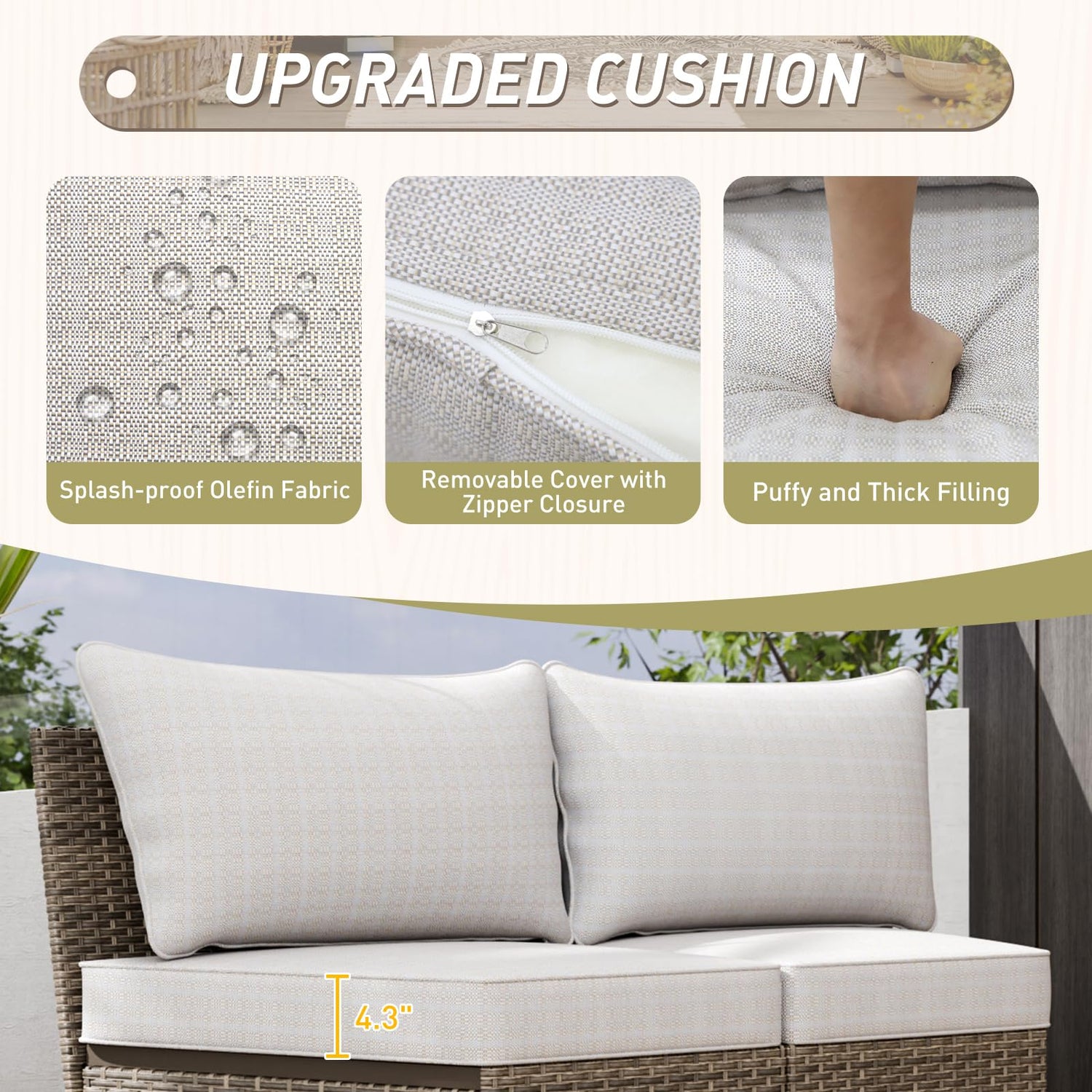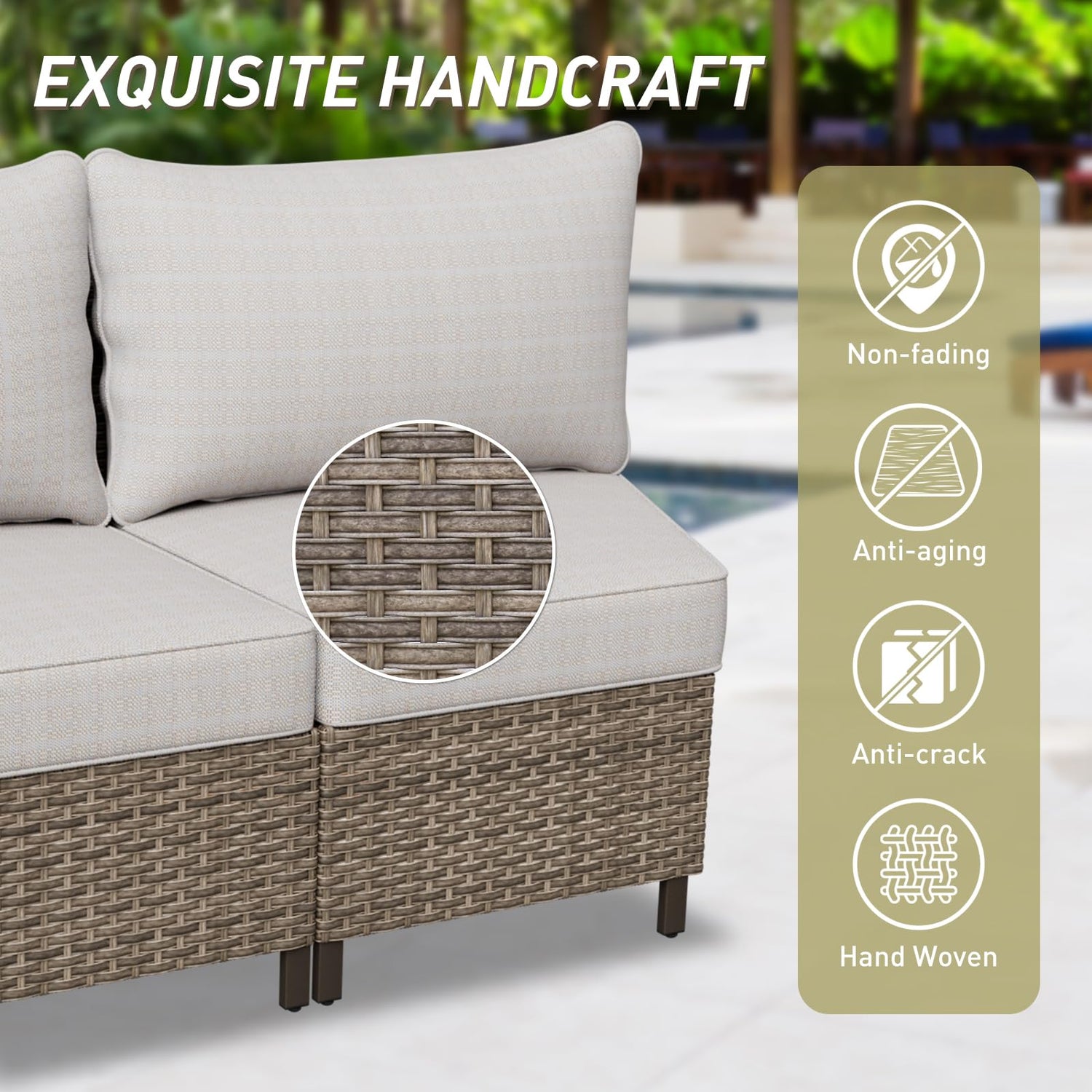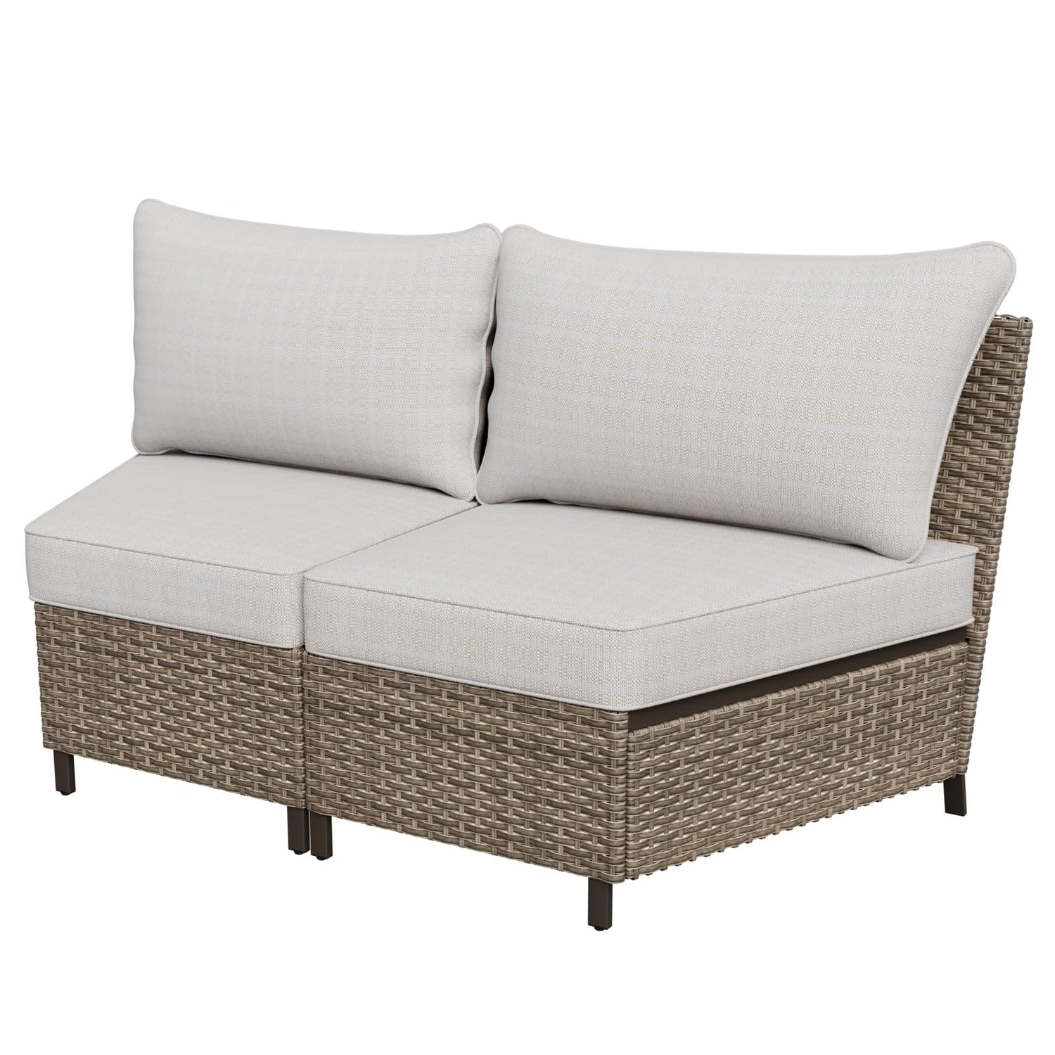 INTER HUT Vista Oasis Outdoor Sectional Sofa Set, 2 Seat Armless Sofa, Wicker Outdoor Furniture with Deep Seating Cushion, Beige/Beige