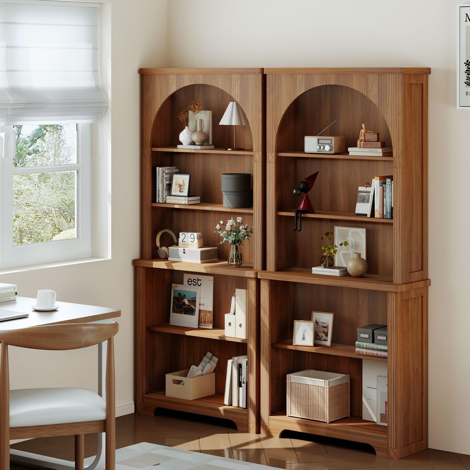 Janmer Home 71'' Tall Arched Bookshelf, Mid Century Modern Curved Bookcase with 5-Tier Storage Shelves, Freestanding Open Display Shelf for Home Office, Living Room (Walnut, 2PC)