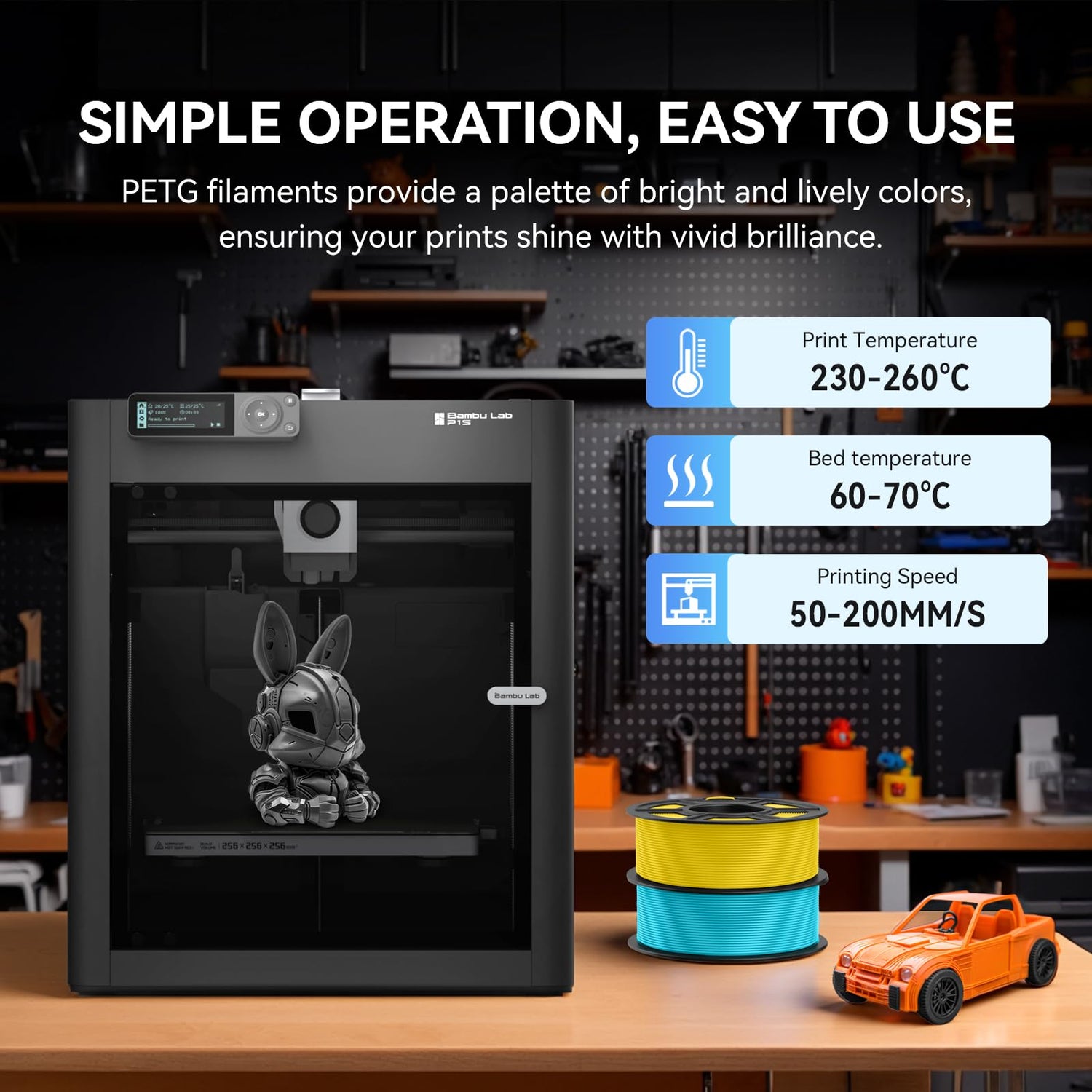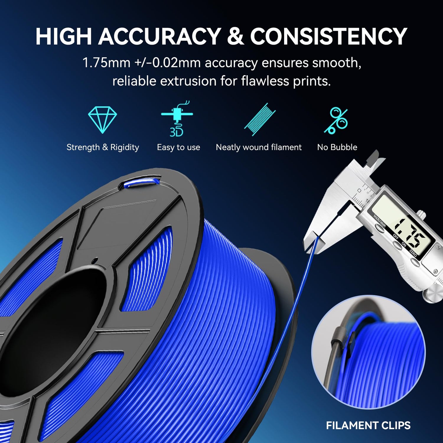 - NO CLOGS, NO BUBBLES: Our PETG filament has a tolerance of +/- 0.02 mm for smooth feeding and extrusion, preventing clogging. Each roll is dried for 24 hours and vacuum-sealed for best results