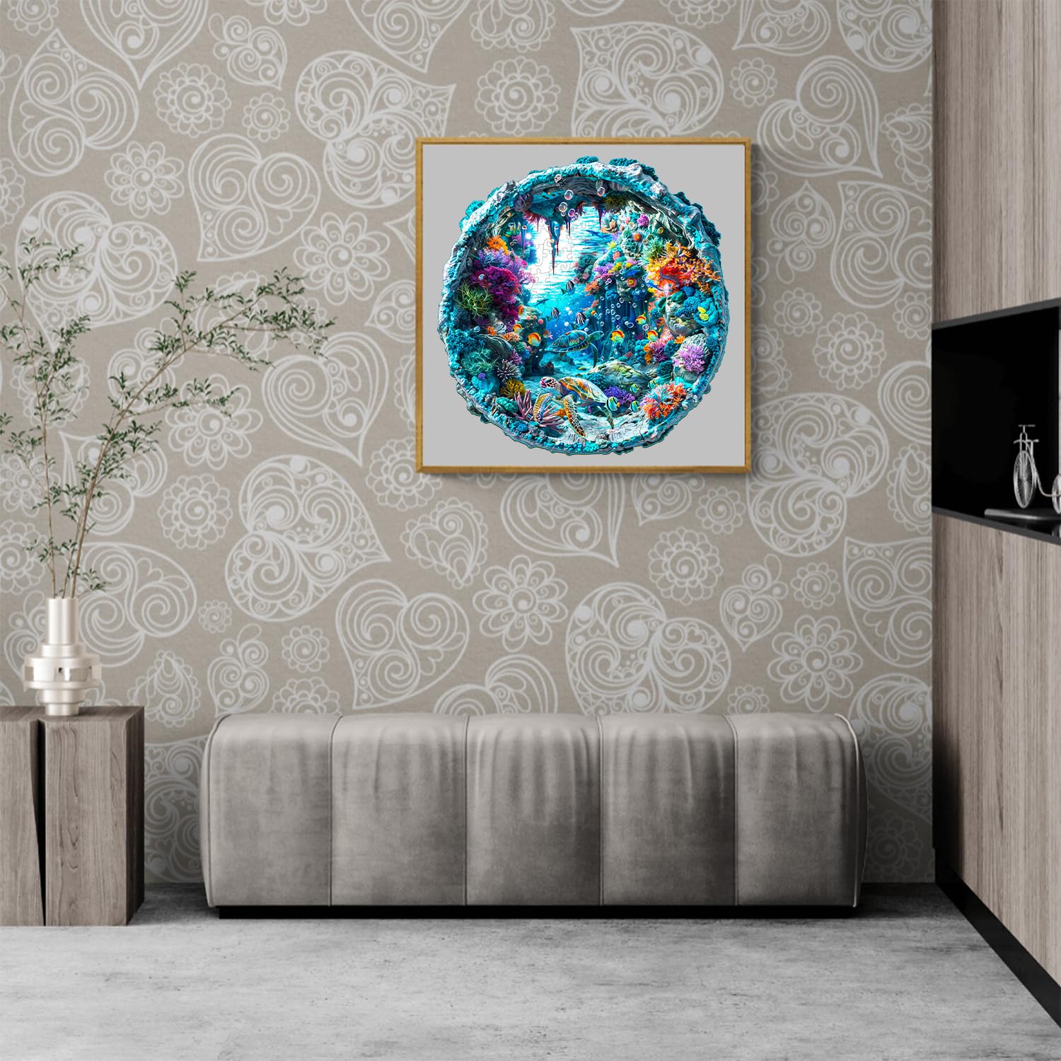 Jigfoxy Wooden Puzzle for Adults, 3D Visual Ocean Wooden Jigsaw Puzzles for Adult, Unique Animal Shape Wood Cut Puzzles, Christmas Thanksgiving Gifts for Friends Family (S-8.5 * 8.5in-100pcs)