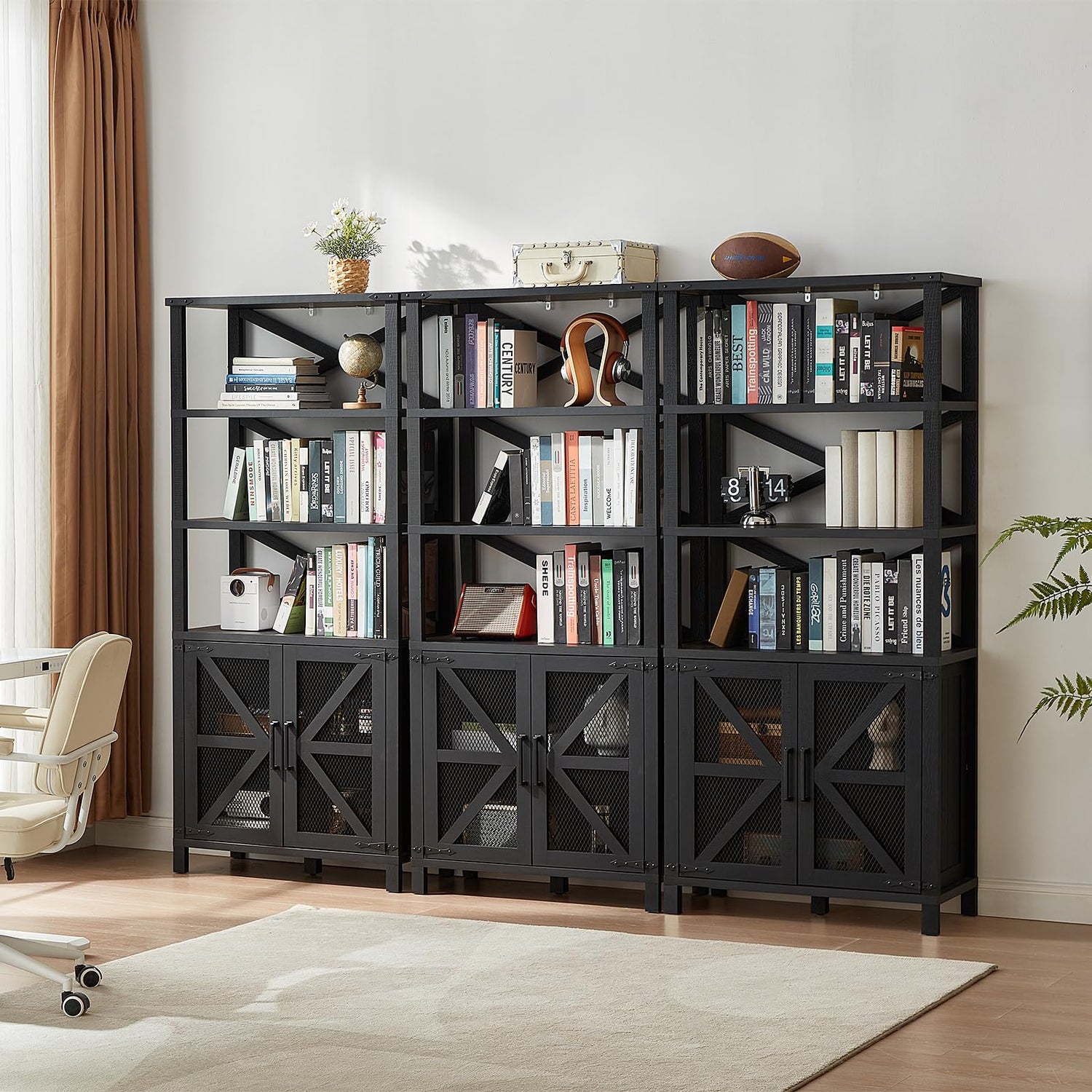 - [Large Storage Space]The bookshelves design has 5 tier, which can provide ample storage and display space for your books, crafts, and decorations. The shelves inside the iron mesh doors are adjustable in height, allowing for flexible adjustments based on the height of your items. The book case iron mesh design allows you to store your items properly and quickly find them, while also maintaining the overall cleanliness of the space and providing a more visually pleasing effect.