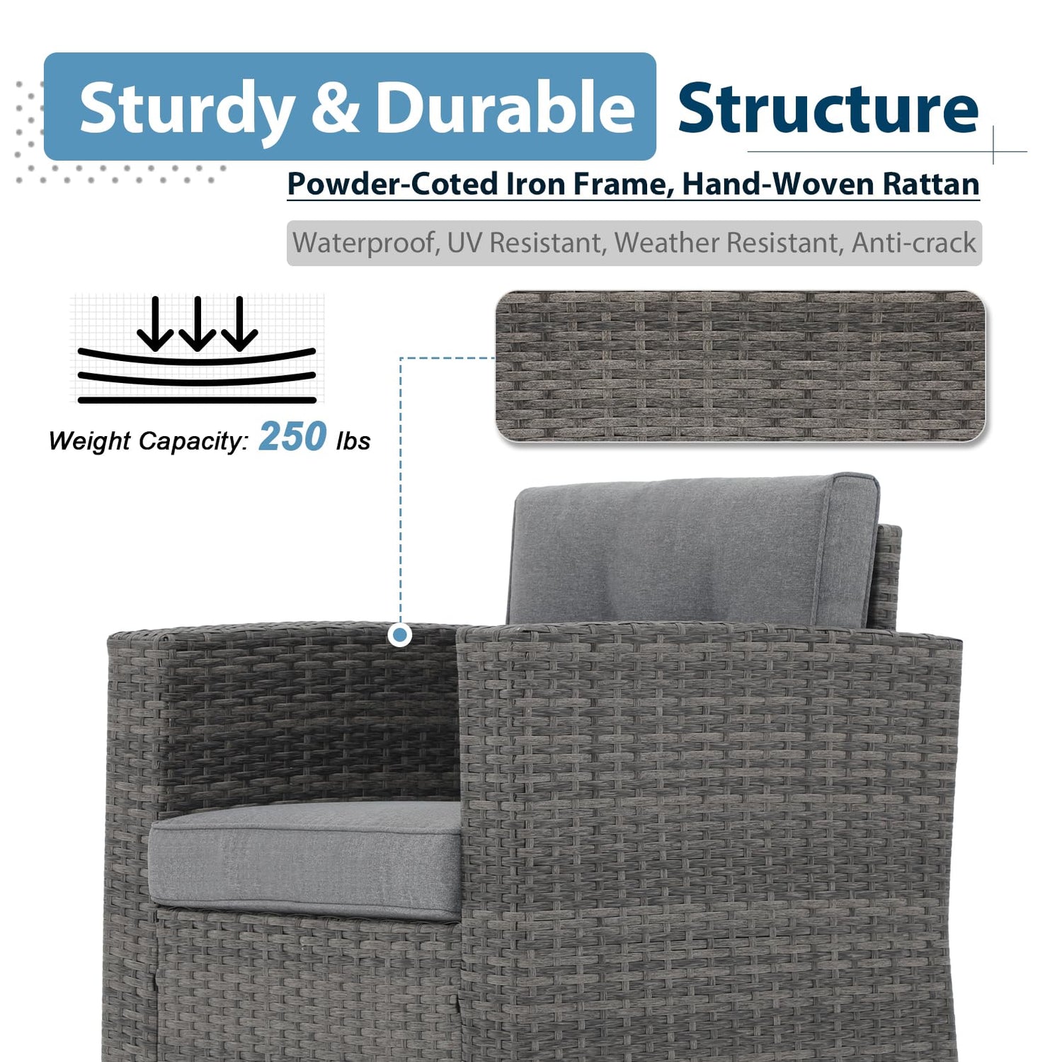- Sturdy & Durable Structure: This outdoor patio set is made of powder-coated iron frame, covered with all-weather hand-woven PE rattan. The entire outdoor sofa is durable, crack and rust resistant, and has high weight-bearing capacity. Each seat can hold up to 250 LBS. You can use this patio sets for a long time