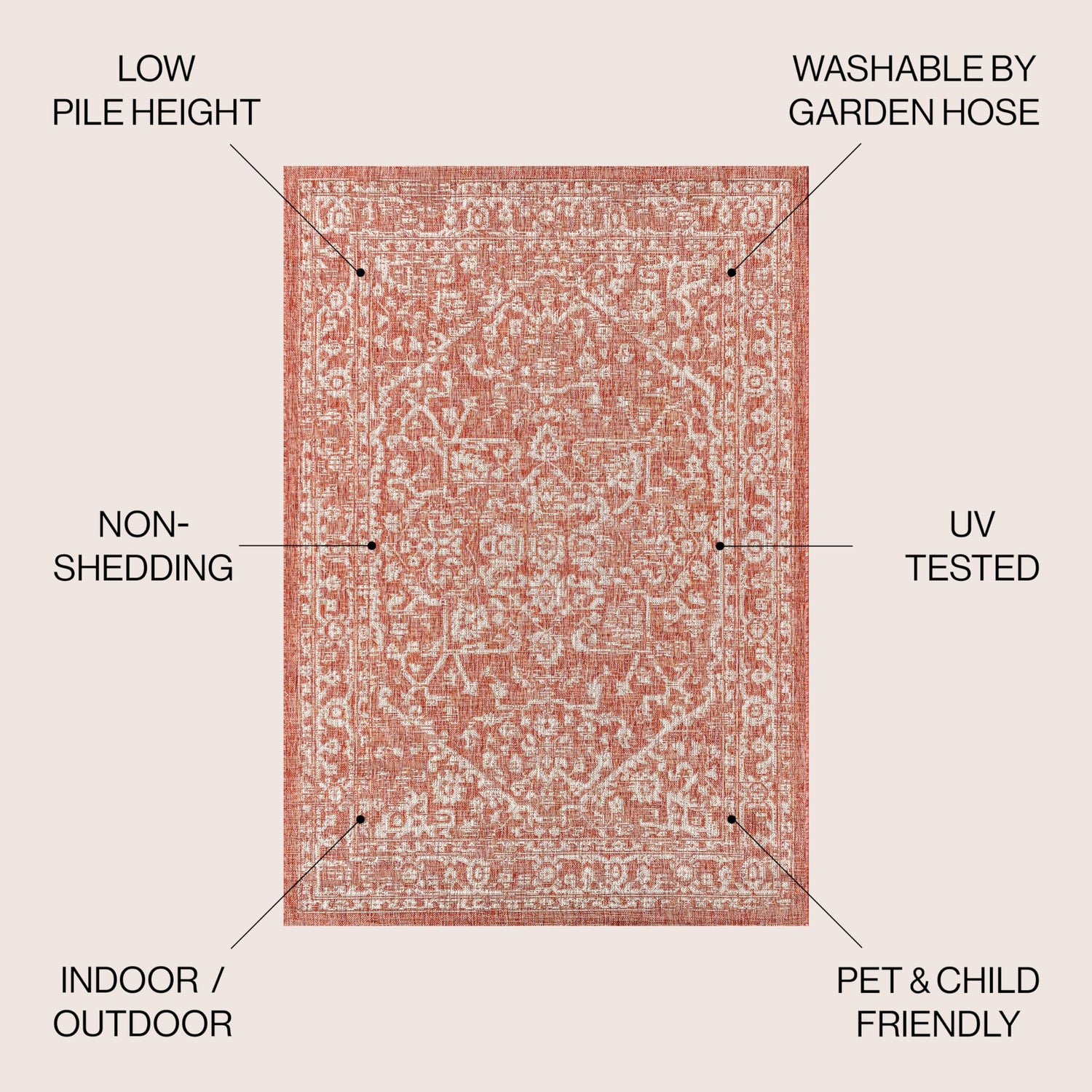 JONATHAN Y Boho Medallion Indoor Outdoor Area Rug 8X10 Red/Taupe, Malta Textured Weave for Backyard, Patio, Porch, Easy-Cleaning, High Traffic, Pet-Friendly, Non-Shedding (SMB104A-8)