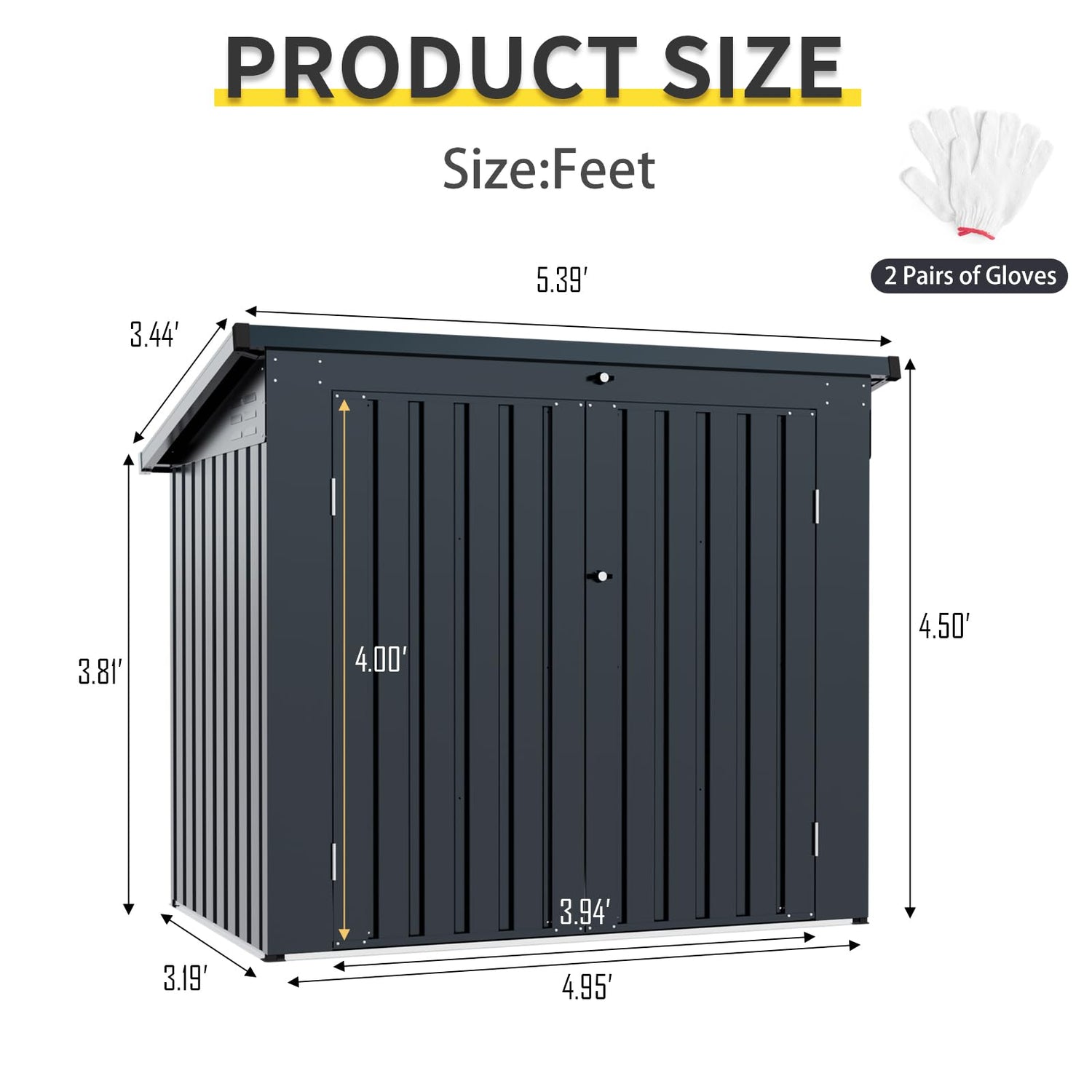 - 【Multi-Use Outdoor Shed】Metal shed is suitable for storing your belonging outdoors. It can store trash can, garden tools, or serve as bike shed in the patio or store firewood in the backyard or even a pet house. Keeps your stuff out of the wind, rain and sun.