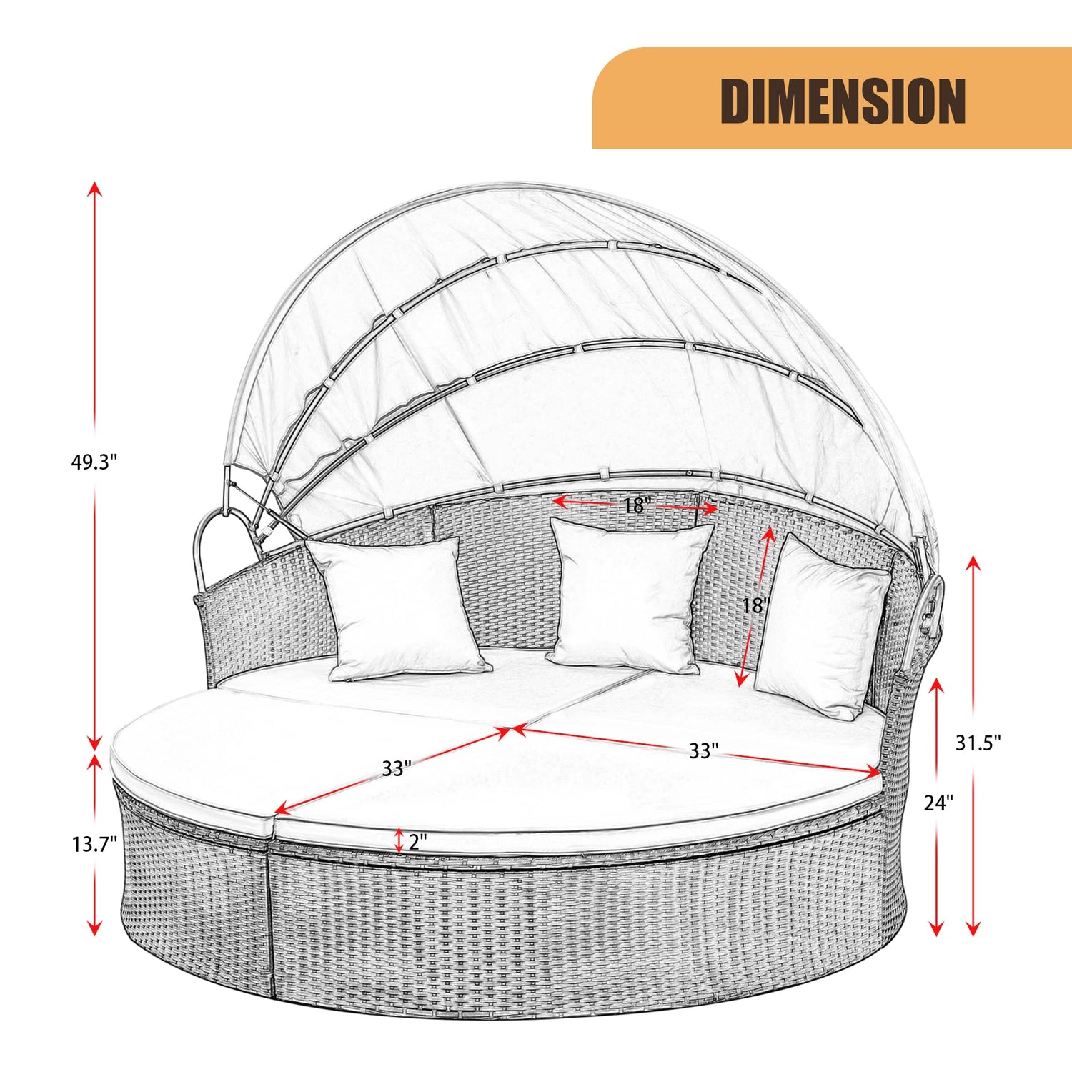- 『Product Details』 Retractable Canopy with hydraulic system,You don't have to worry about the sun outside in summer. If you feel hot, you can remove the cushions and sit on this wicker bed for a great summer. The covers and pillows are made from a high-quality sponge, and covers are detachable to clean.
