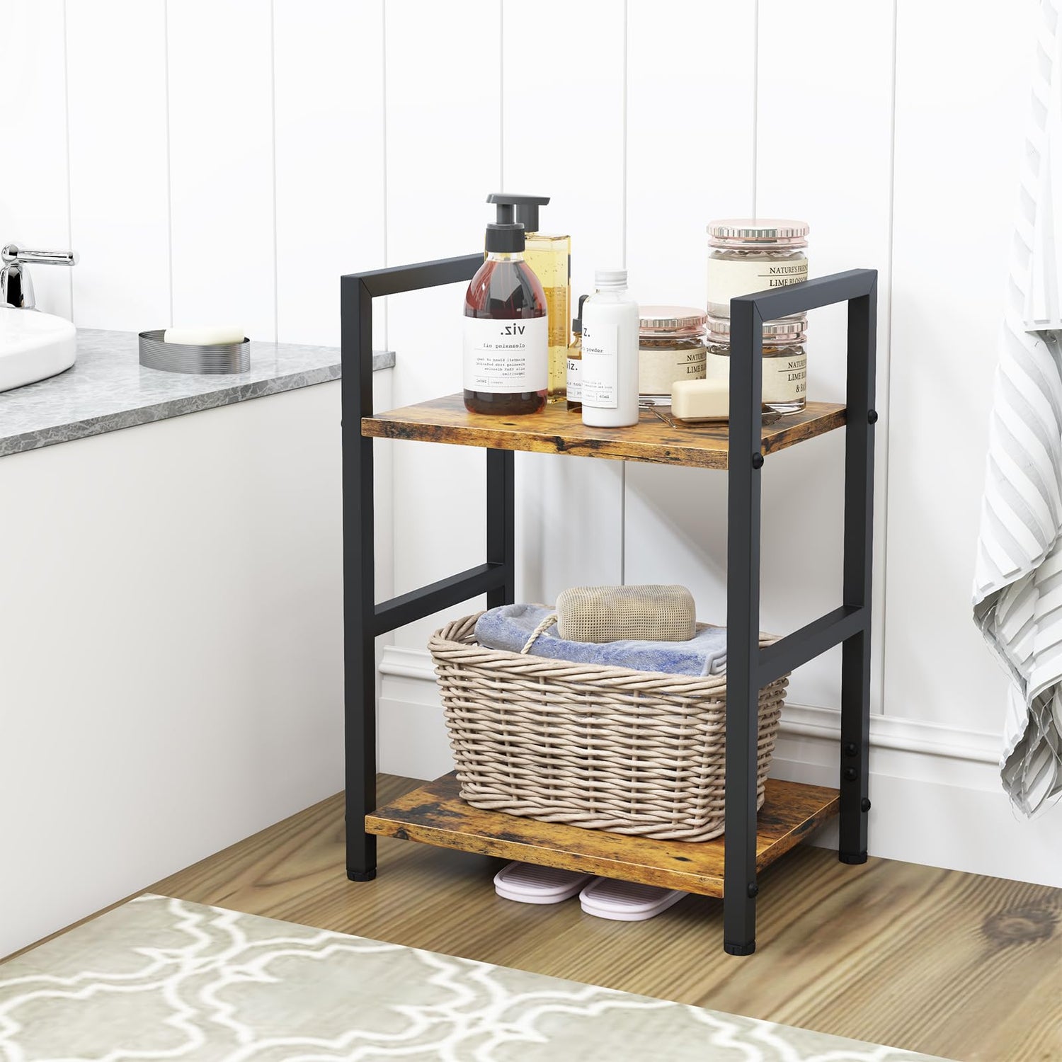 Katrawu Small Bookshelf for Small Space, 2 Tier Industrial Bookcase,Narrow Book Case Storage Organizer Book Shelf for Living Room, Bedroom and Office, Easy Assembly(2 Tier,Rustic Brown)