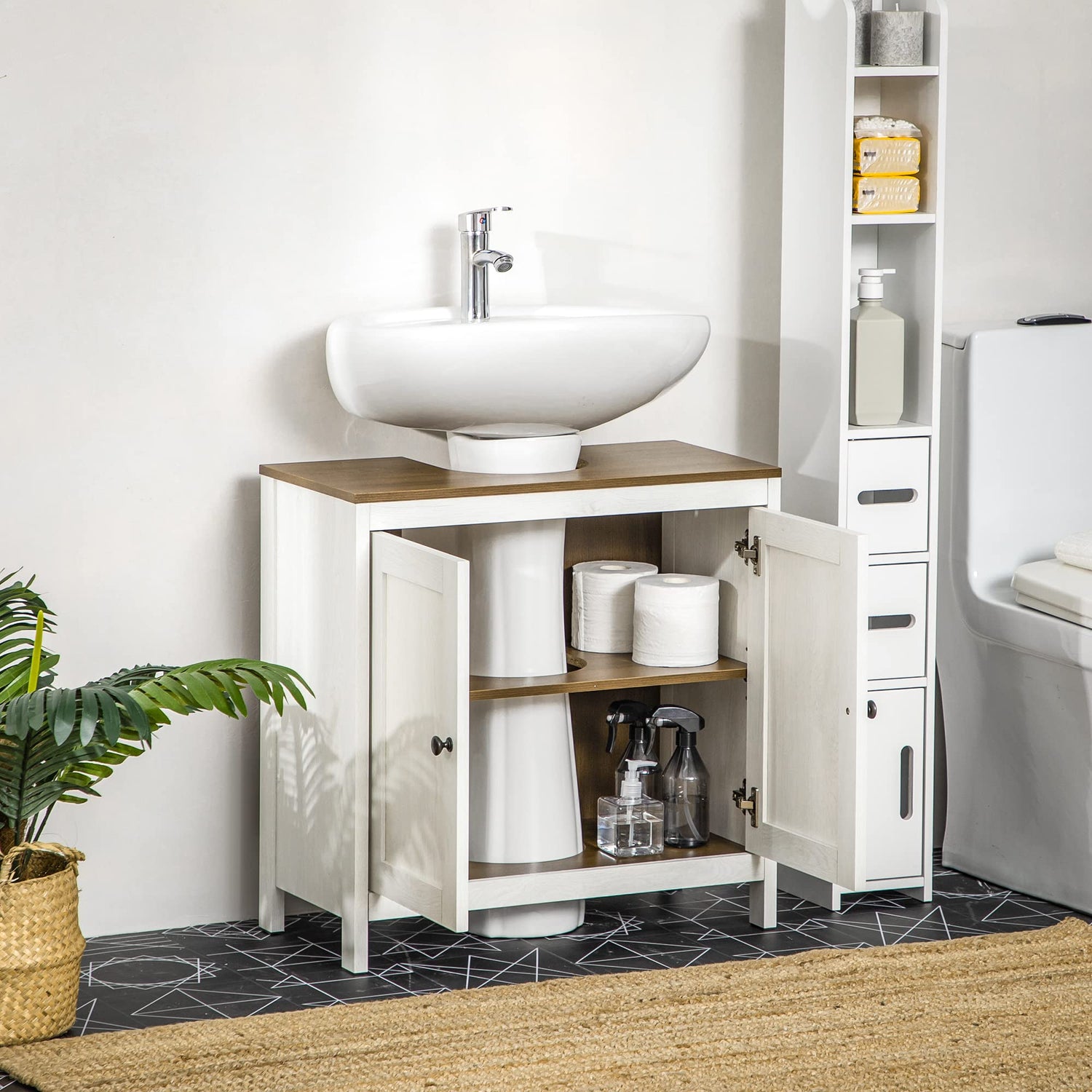 kleankin Modern Bathroom Sink Cabinet, Floor Standing Under Sink Cabinet, Freestanding Storage Cupboard with Adjustable Shelf, Double Doors, Antique White