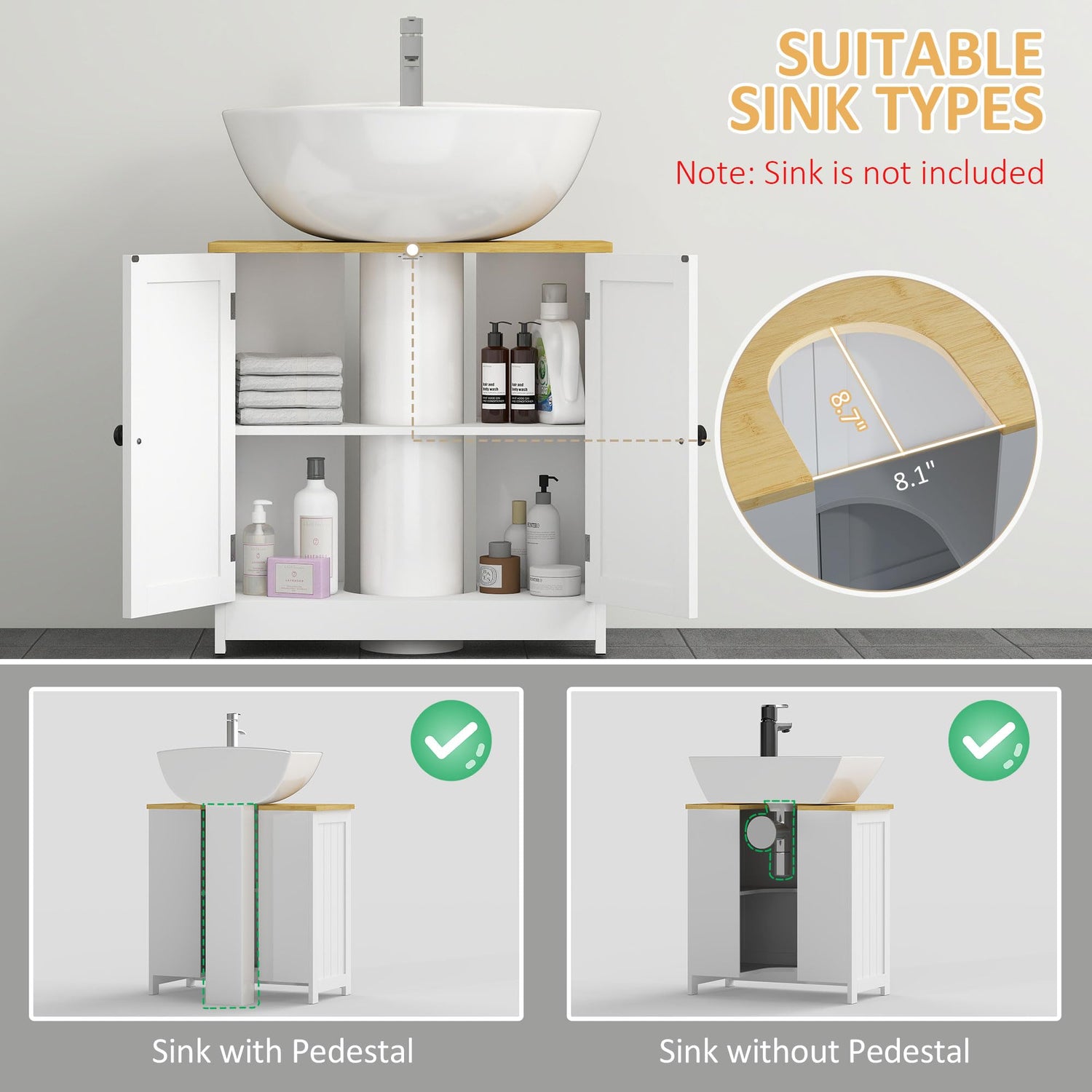 kleankin Modern Bathroom Under Sink Cabinet, Bathroom Vanity for Wall Mount Sink, Storage Cabinet with Double Doors and Adjustable Shelf, White