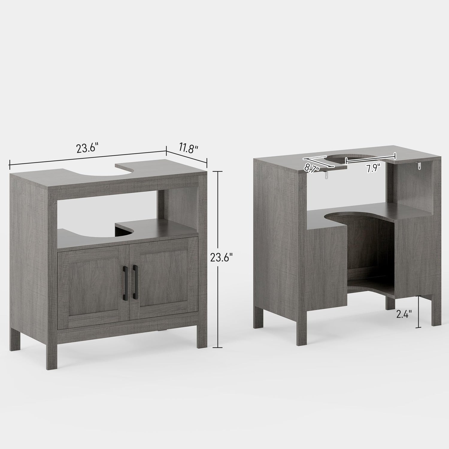 - Under Sink Cabinet Information: Overall Dimensions: 23.5" W x 11.75" D x 23.5" H. Suitable for Washbasin: 19.75" L x 7.75" W. Assembly required.