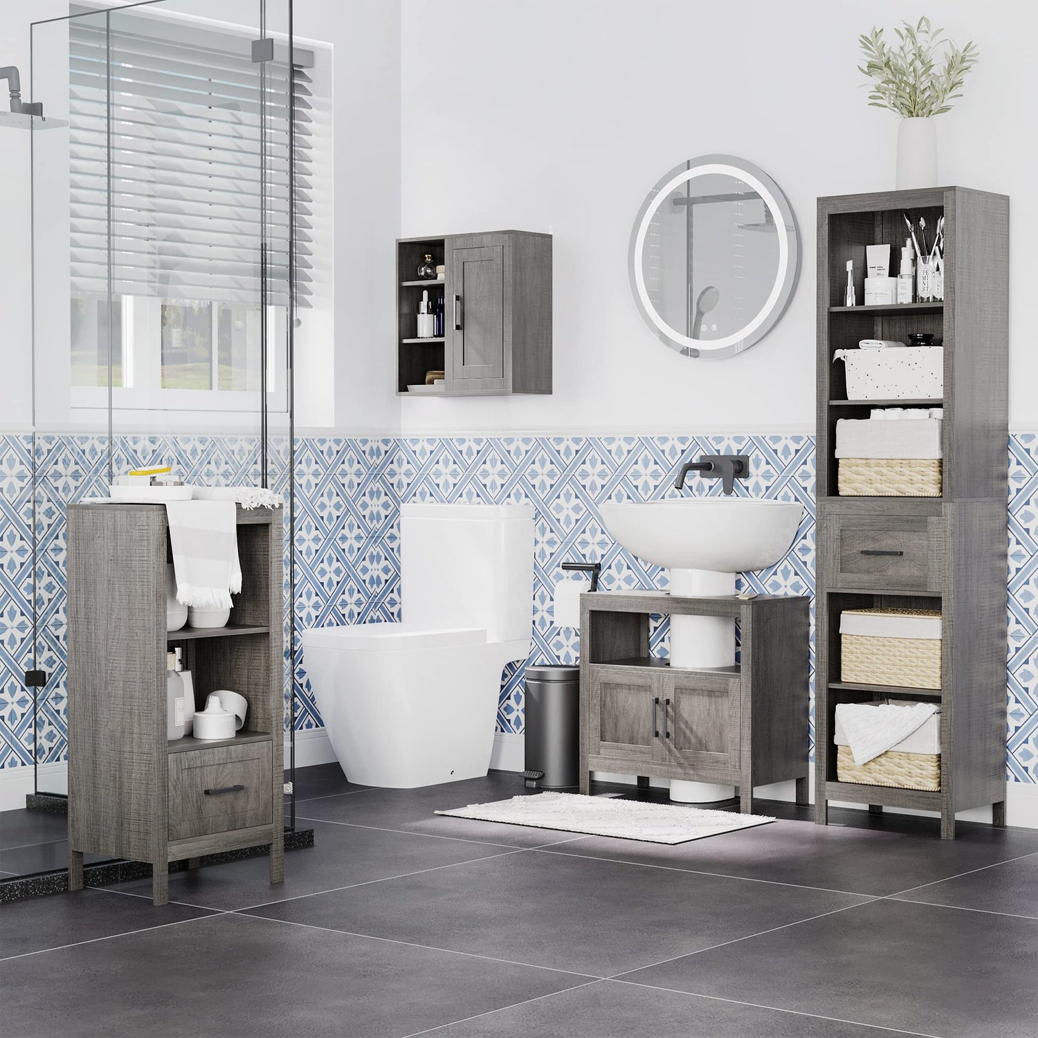 - Space Saving: Do you have an unused space in your bathroom? A compact floor storage cabinet like this would be perfect! It fits underneath your bathroom sink, bringing in an extra place for bathroom storage. We recommend you measure the sink before purchasing.