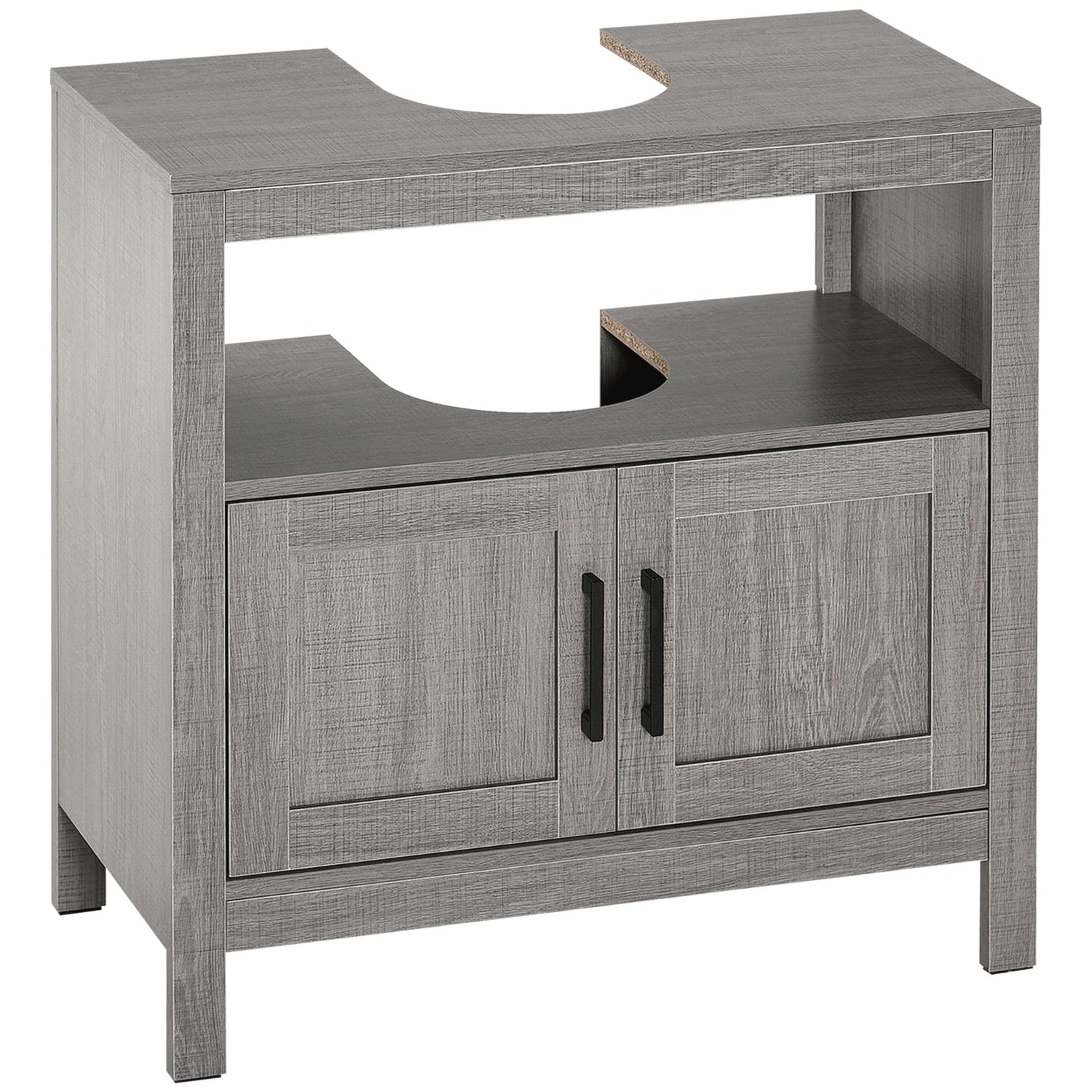 kleankin Pedestal Sink Storage Cabinet, Bathroom Under Sink Cabinet with 2 Doors and Open Shelf, Bathroom Vanity, Gray