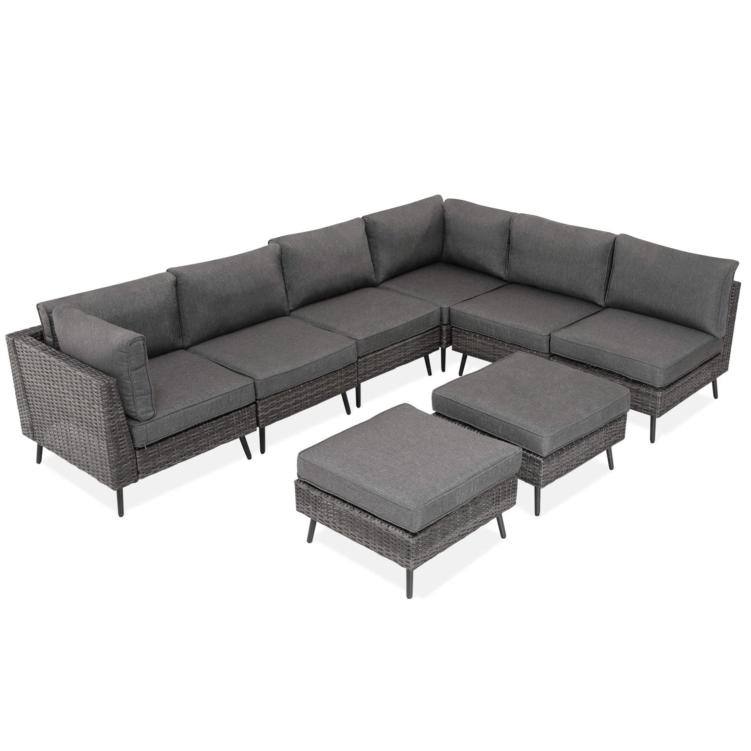 LAUSAINT HOME 8 Piece Outdoor Sectional Sofa PE Rattan Patio Conversation Sets, All Weather Patio Furniture Set with Thick Cushions for Garden, Poolside, Backyard (Grey)