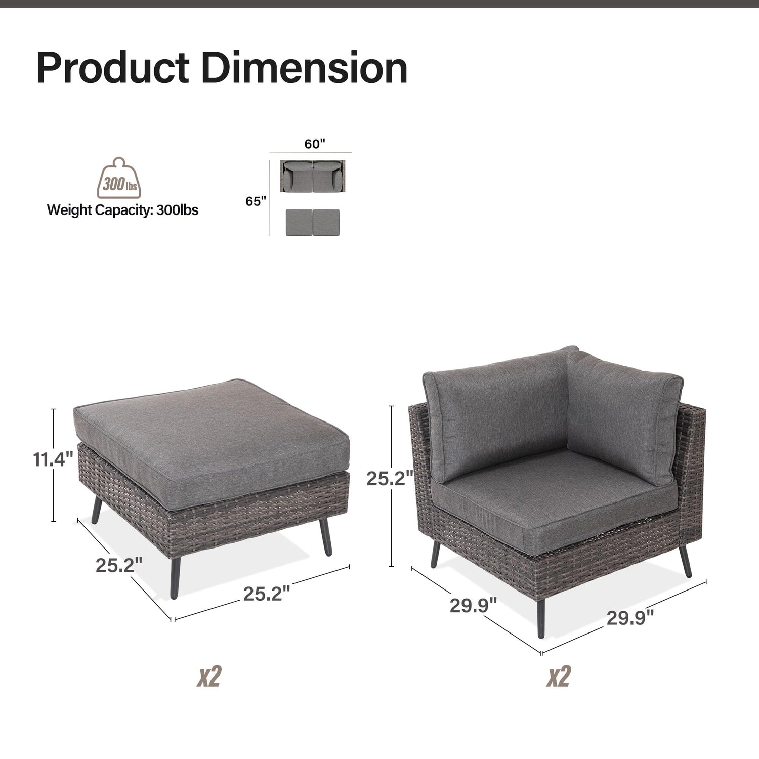 • 【Specification & Support】Patio Furniture Sets includes 2 corner chairs, 2 ottoman chairs. If you have any questions, Please feel free to contact us at any time.