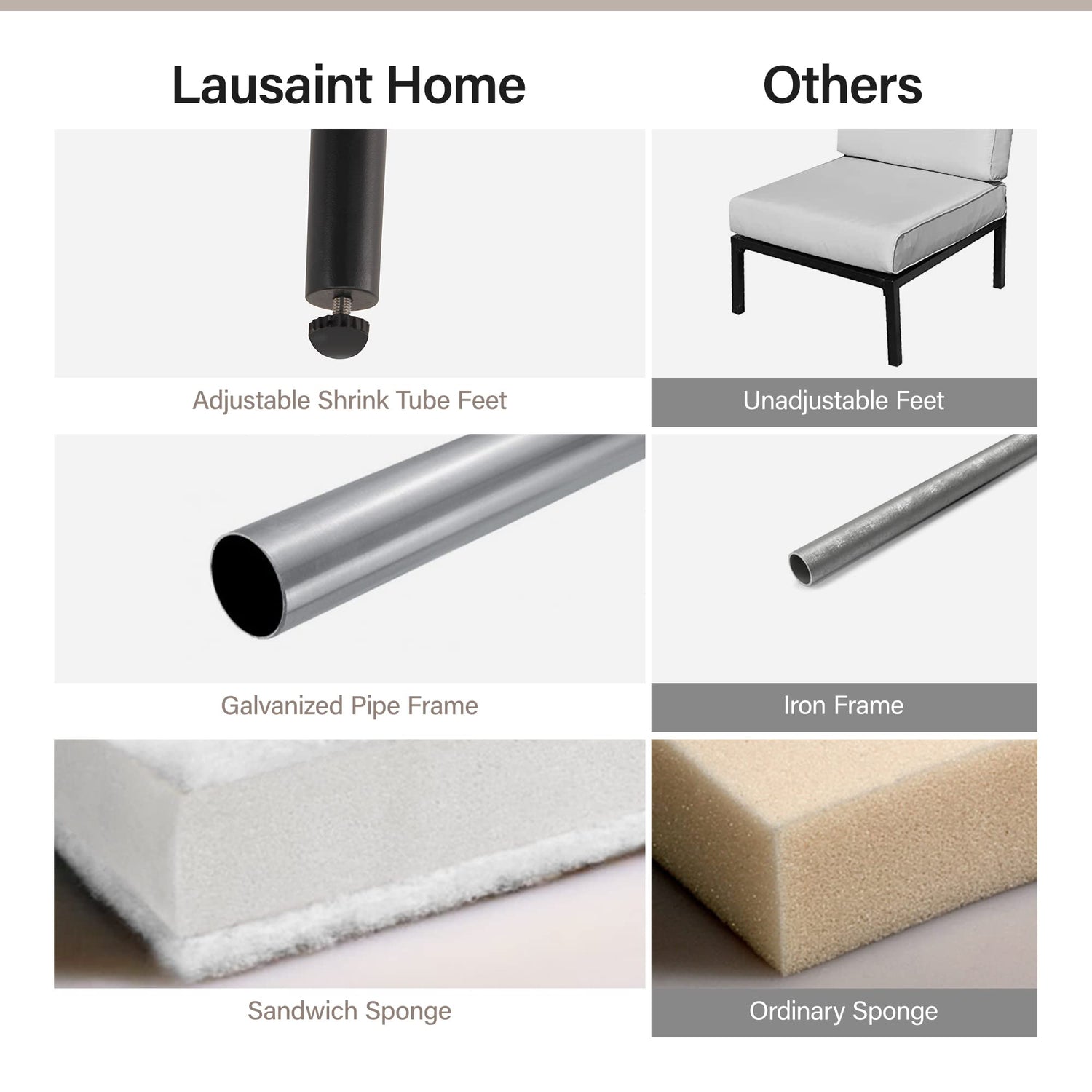 • 【Modern & Modular Design】LAUSAINT HOME Gentle Chic 4-piece modern design outdoor sectional will provide a comfortable space to chat with your friend. It can be separated and arranged in various ways to fit your outdoor space. Fashionabpatio dining sets patio dining set for 4 outdoor table and chairs outdoor dining set outdoor dining patio table and chairs patio set outdoor patio dining setle PE rattan and thickened cushions complement almost any home or landscaping theme. Our patio furniture set is suitable for the backyard, patio, and garden.