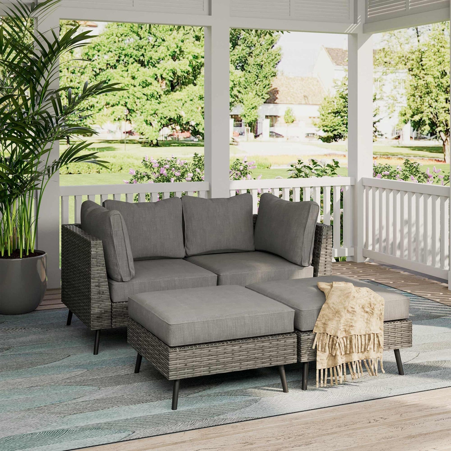 LAUSAINT HOME Outdoor Patio Furniture, 4 Piece Outdoor Sectional Sofa PE Rattan Wicker Patio Conversation Sets, All Weather Patio Furniture Set with Thick Cushions for Garden, Backyard(Grey)