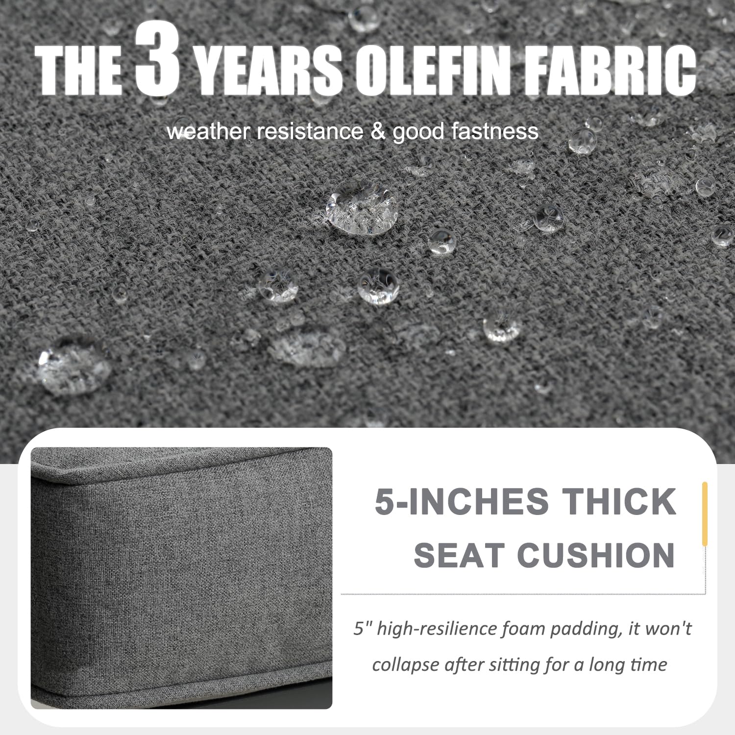 • UPGRADE COMFORT: Our cushion cover is made of upgraded Olefin fabric. The olefin cushion fabric is superior to polyester fabric in terms of sun protection - Colorfastness, and anti-aging. Inside is filled with 5 inches soft and elastic sponge, which provides a comfortable cozy feeling to sit and back on.