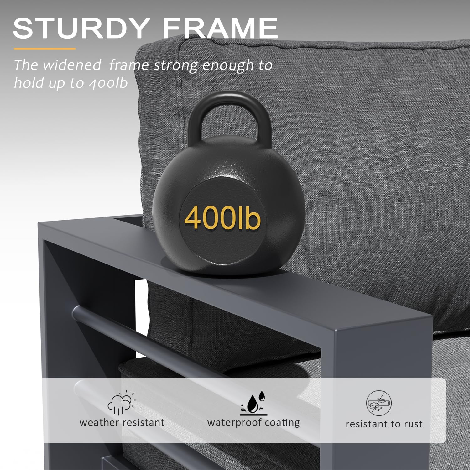 • ALL-WEATHER FRAMES: Constructed from powder-coated aluminum frames, that's water-resistant, UV-resistant, and rust-resistant so you can feel safe leaving this set outdoors no matter the season. The rust-proof aluminum frames are lightweight for easy handling and storage.