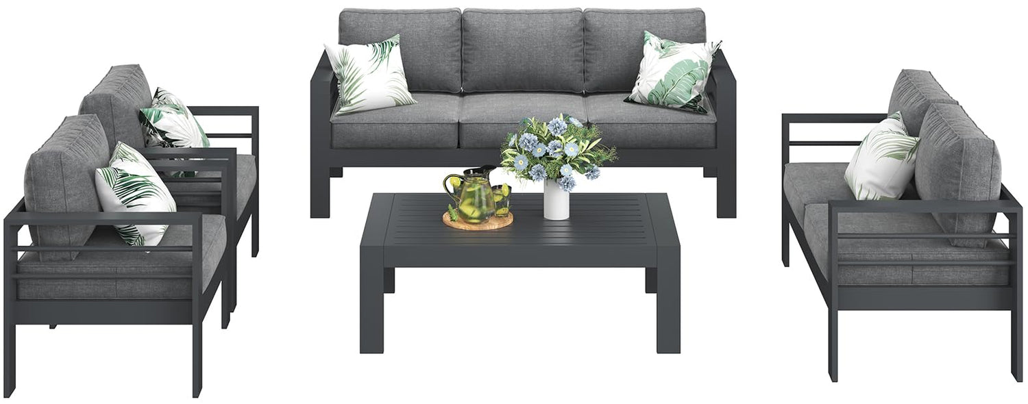 LayinSun Outdoor Aluminum Furniture Set, 5 Pieces Patio Sectional Conversation Chat Sofa Modern Seating Set with Coffee Table