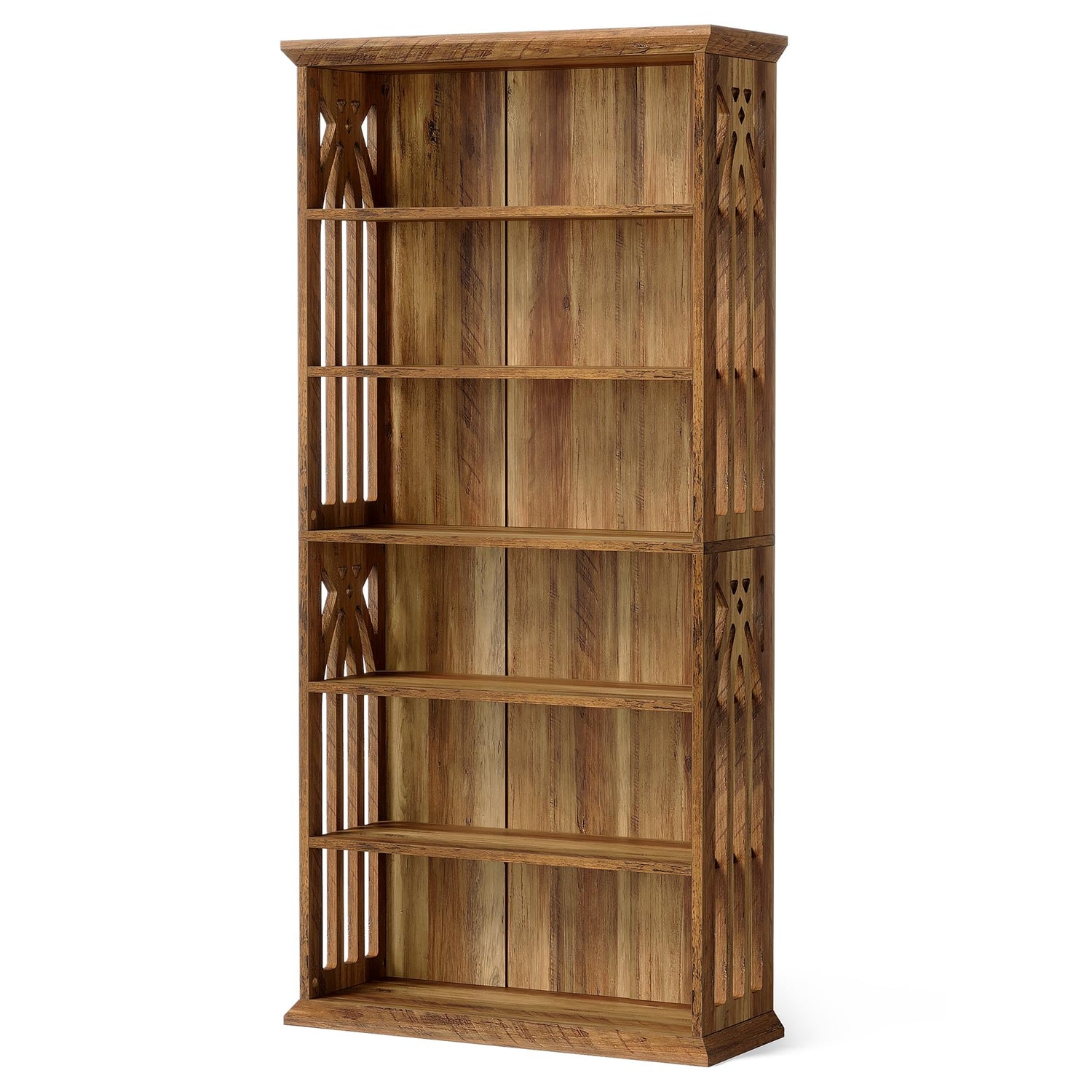 LITTLE TREE 6-Tier Bookcase, 75-Inch Farmhouse Bookshelves and Bookcases, Floor Standing 6 Shelf Wooden Display Storage Shelves Tall Bookcase for Home Office, Living Room, Bed Room, Brown