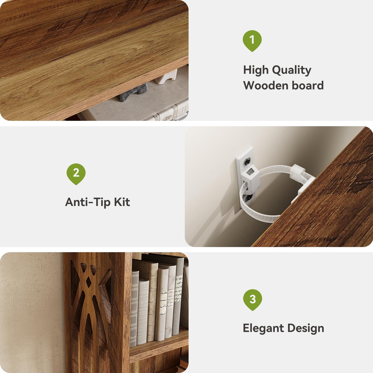 - Farmhouse Style with Clean Lines: A perfect blend of farmhouse style and modern simplicity, this wooden book shelf complements various interiors. Its brown wooden finish adds warmth to any space