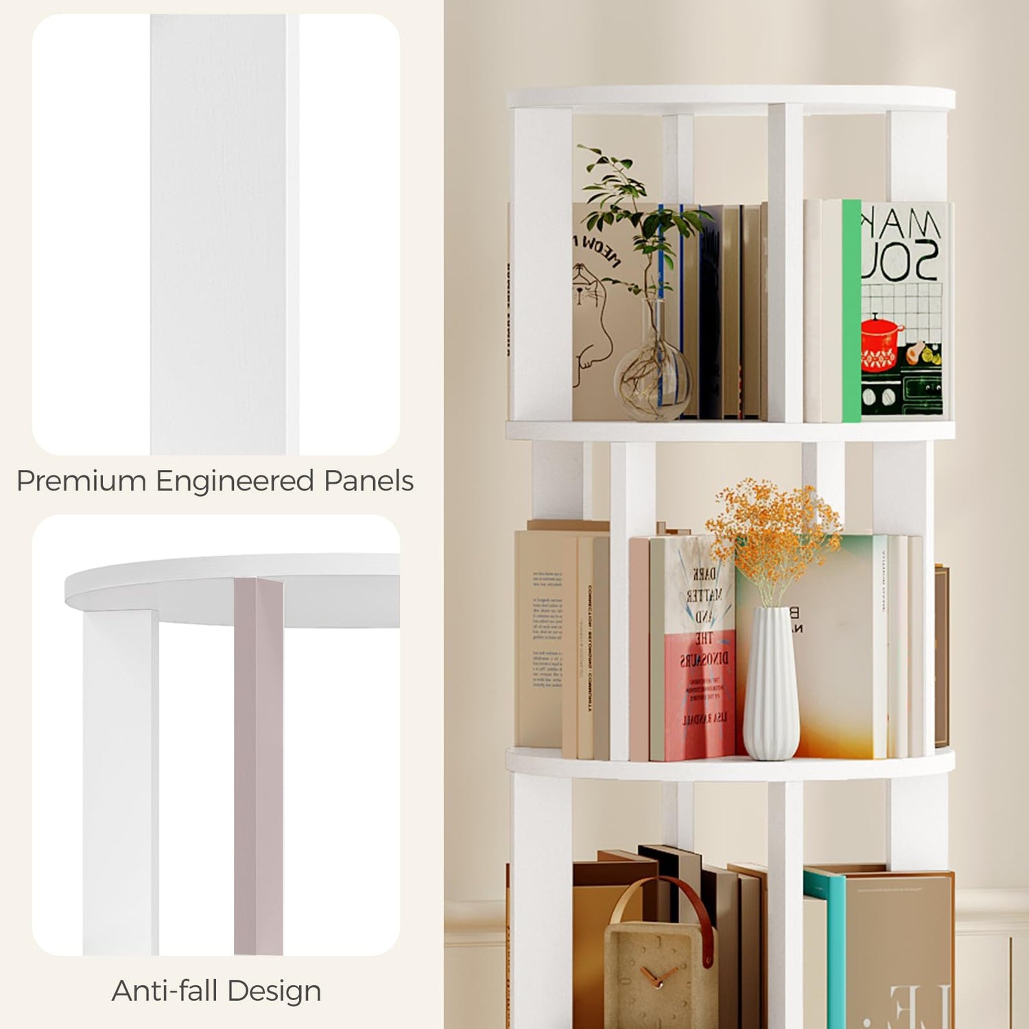 - Sturdiness & Durability: Made from high-quality panels, this rotating bookshelf features a smooth, easy-to-clean surface. Supports up to 44 lb per shelf, ensuring secure and reliable storage