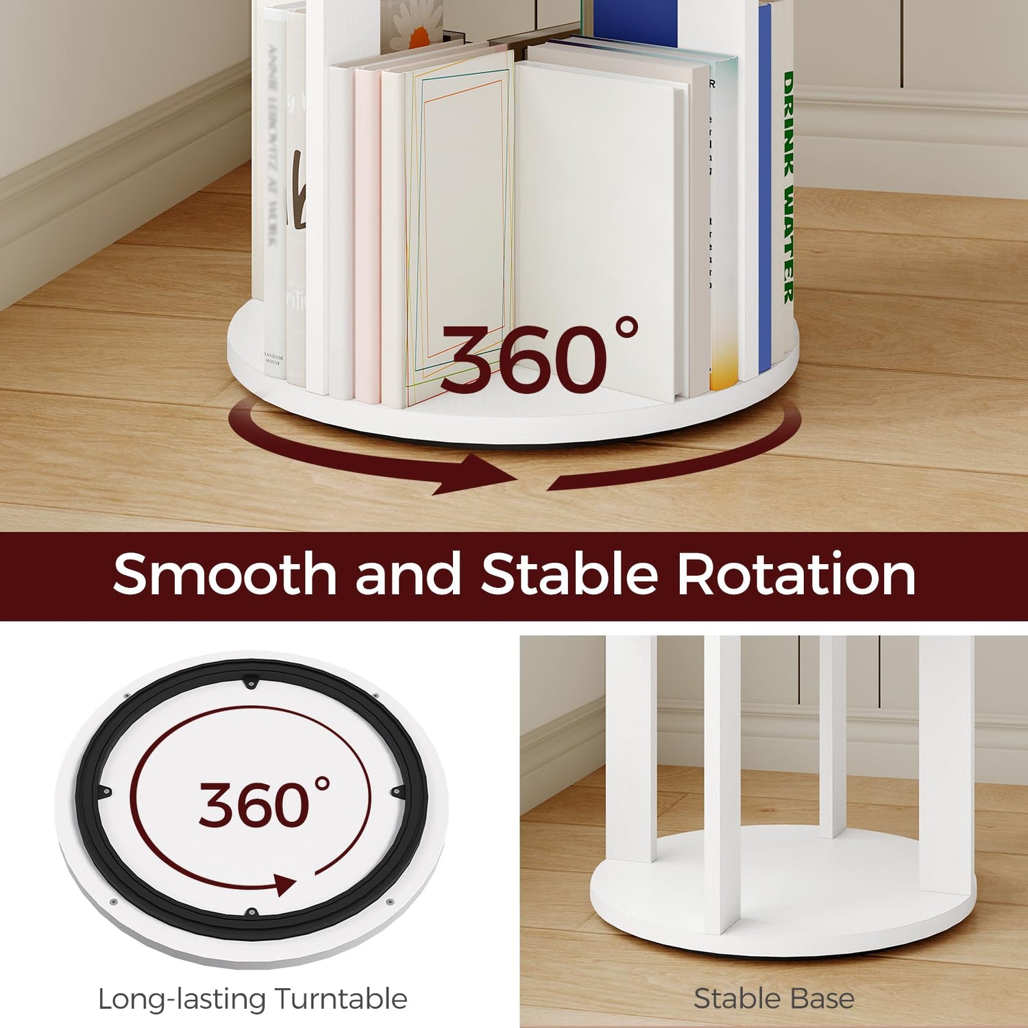 - 360° Rotating Design: Featuring a smooth-swivel and long-lasting base and a stable bottom plate, our bookshelf ensures enhanced stability during rotation without tilting or wobbling. It allows easy access to books from any side while keeping them neatly organized