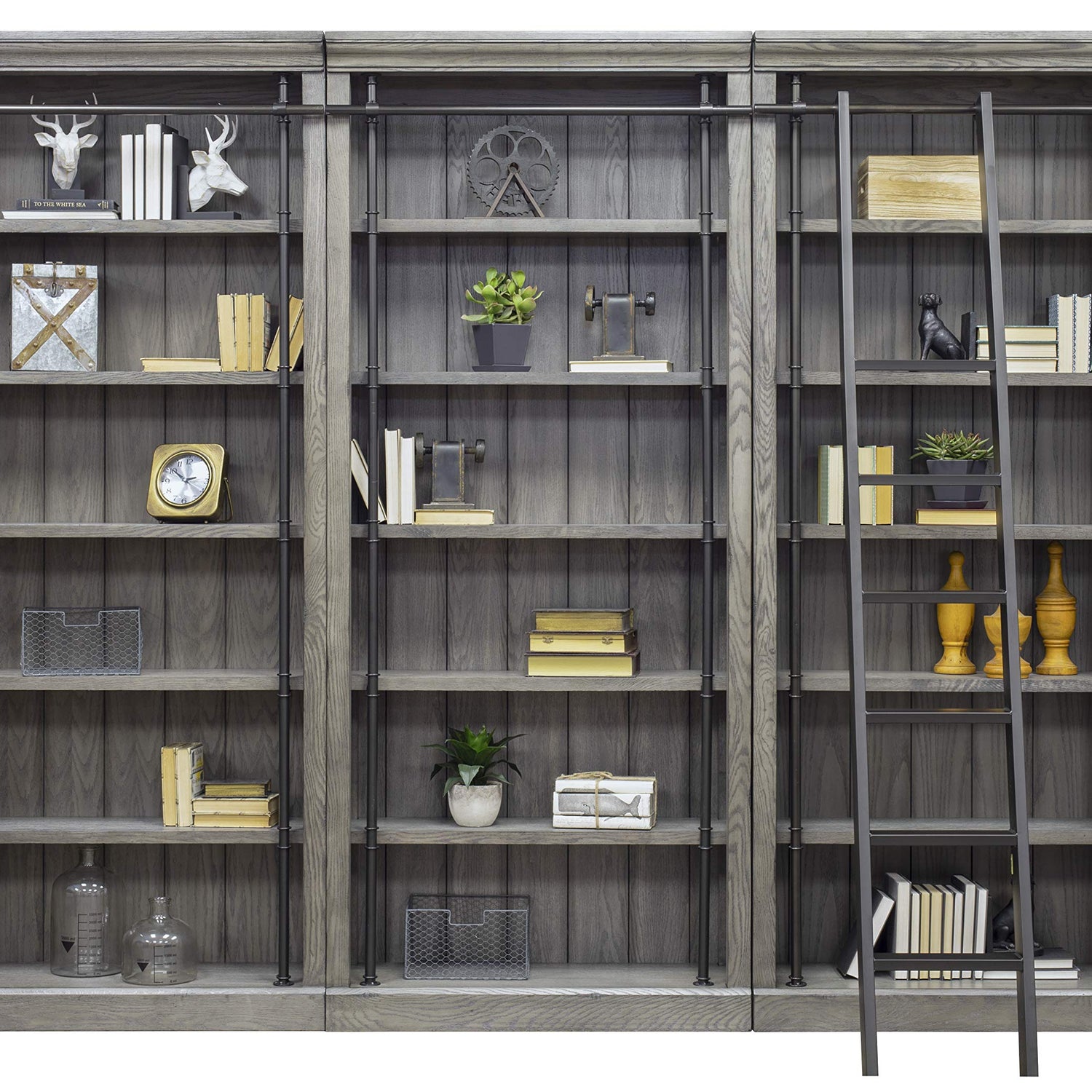 Martin Furniture Avondale 8' Tall Bookcase Wall with Ladder, Storage Organizer, Display Shelf for Office, Gray