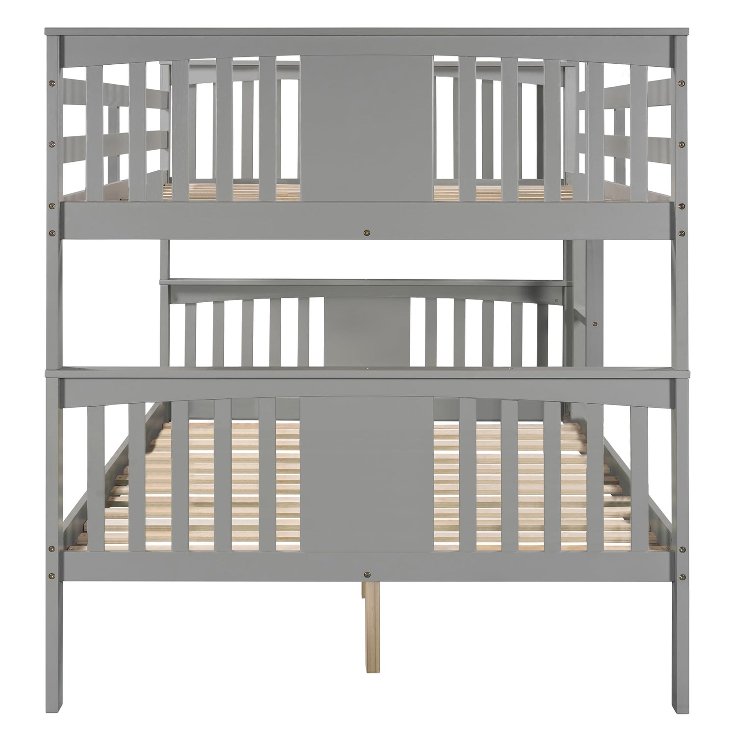 Merax Full Over Full Bunk Bed Convertible to Two Separate Beds, Solid Pine Wood Frame with Safety Guardrail & Headboard/Footboard, Sturdy Durable Design, for Teens/Adults, No Box Spring Needed, Grey
