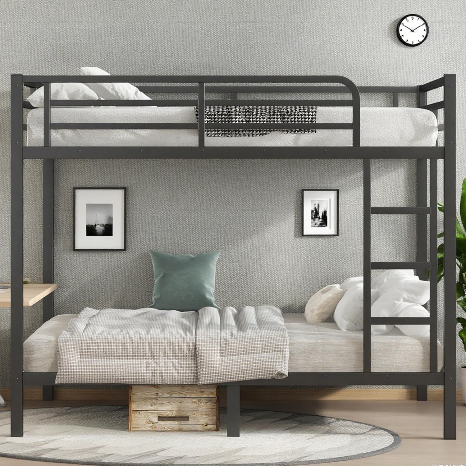 - đ„ăHeavy Duty Metal Bunk BedăThis full over full bunk bed frame is made of heavy duty metal frame with anti-rust powder coating,which provides sturdiness and durability.Bottom bed with thicker legs for reinforcement. What's more,the firm screw connections further enhance stability.The bottom bunk clearance is 9.8 inches, you can put a storage box under the bed to tidy up the clothes, toys or quilts.