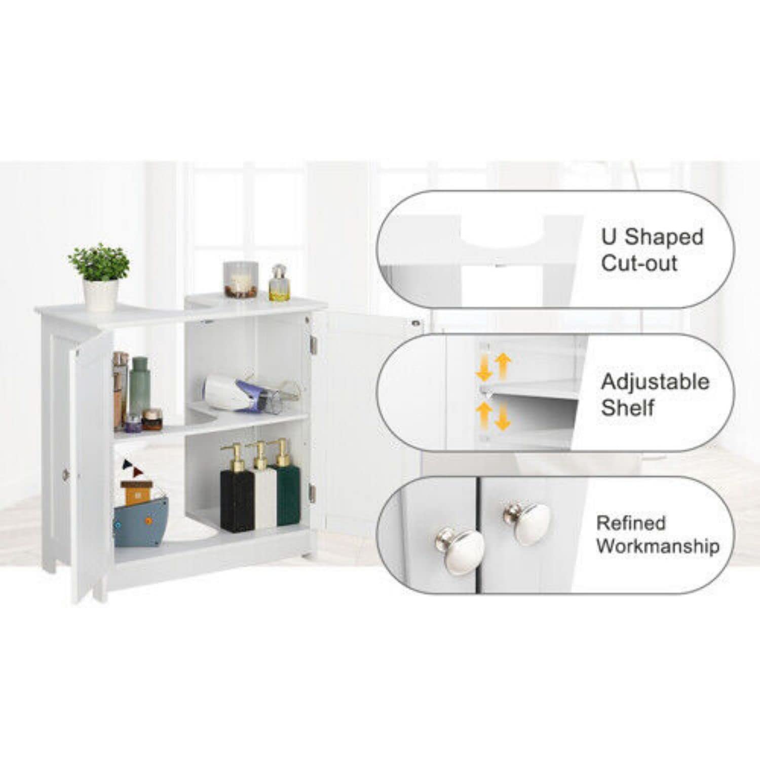 MEZHI Under Sink Vanity Cabinet Bathroom Double Door Shelf Cupboard Basin Organizer