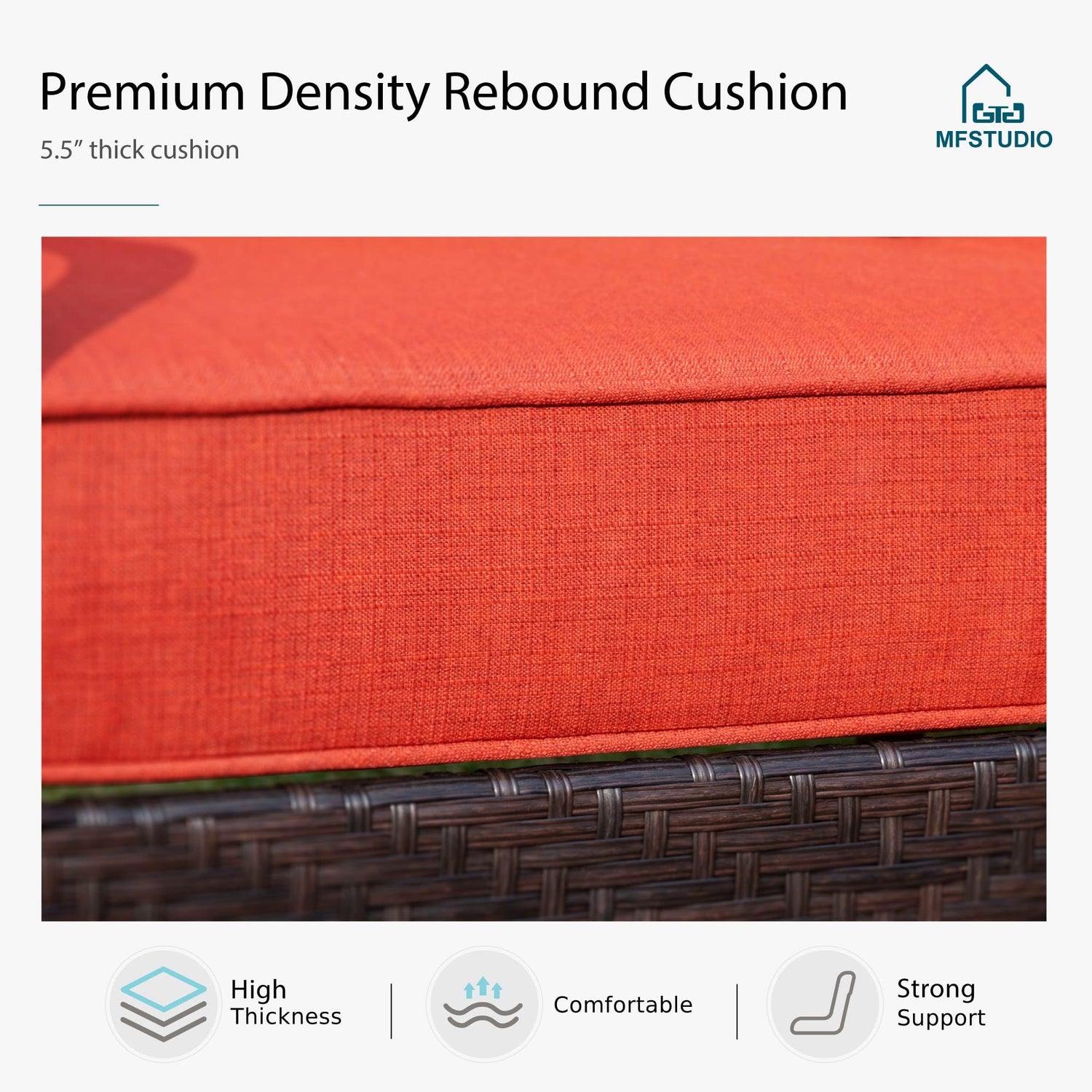 - Sturdy Structure: Our outdoor patio furniture features with thicken steel frame with E-coating for excellent performance on anti rust and long-lasting durability. The steel slat cross bar on the bottom adds stability and supports up to 350lbs for each single sofa chair, ensuring a luxurious outdoor experience for you