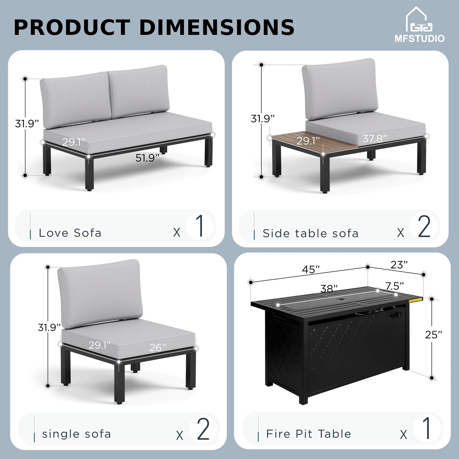 MFSTUDIO 6 Pieces Outdoor Patio Furniture Set with Fire Pit Table, Metal Outdoor Sectional Sofa Conversation Set for Backyard,Garden