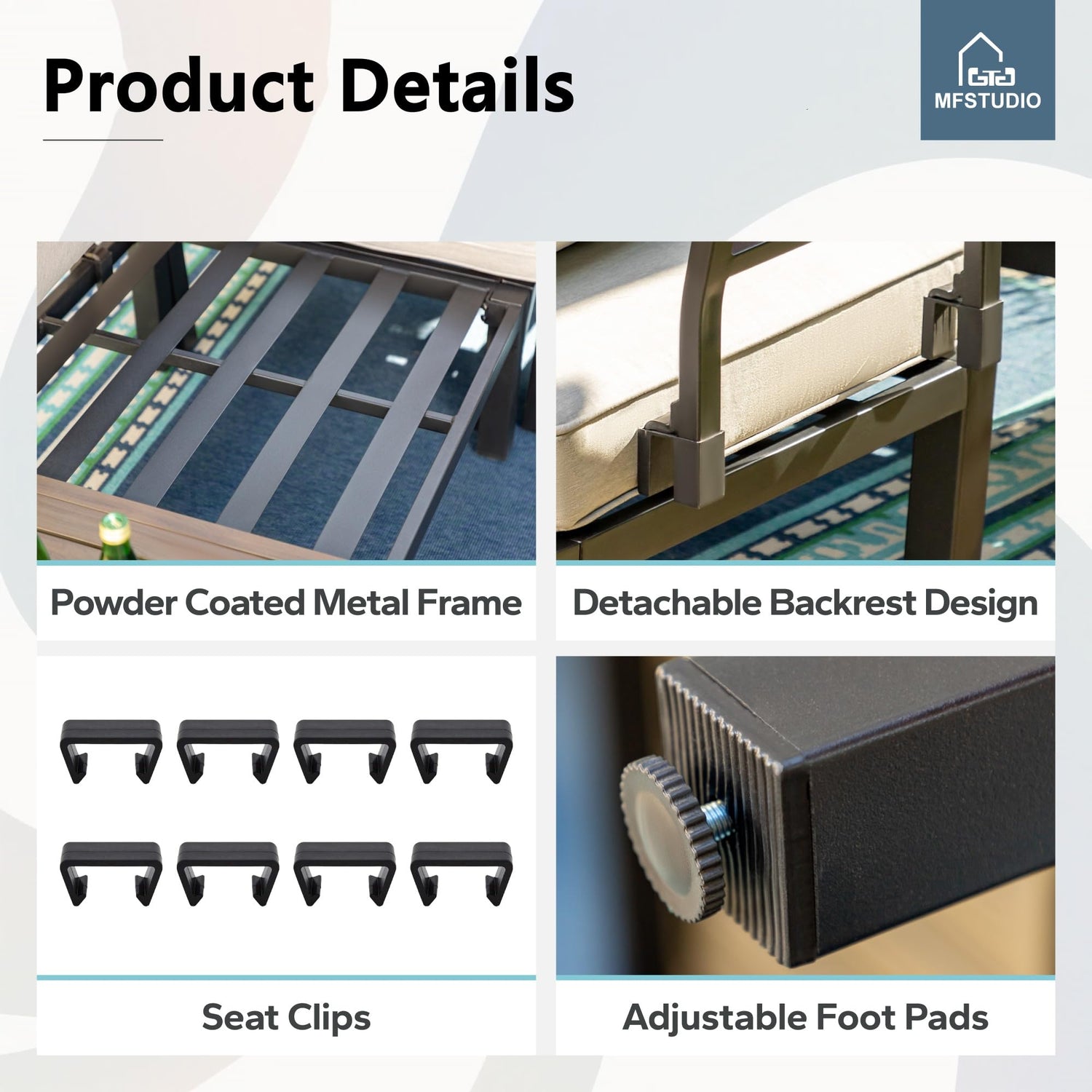 • Sturdy Structure: Our metal patio conversation set features a high-quality, durable powder-coated metal frame that is rust-resistant and designed to withstand all weather conditions. The thick legs of the sofa provide enhanced weight capacity, ensuring years of reliable use