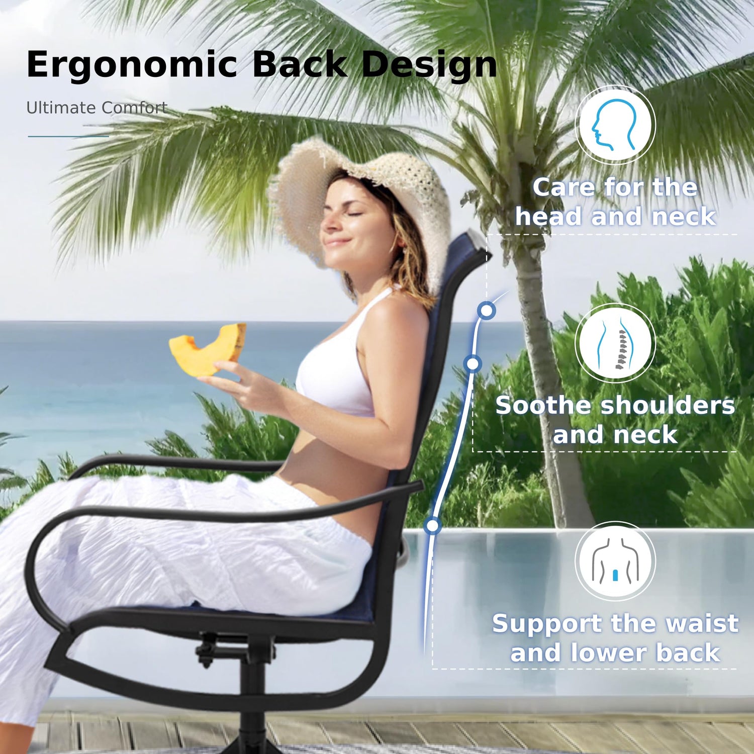 • Breathable Sling Fabric: The ergonomic design with durable Textilene fabric helps reduce muscle tension and stress, providing the perfect balance between hard and soft surfaces for optimal comfort.Weather resistant, rainproof, UV-resistant
