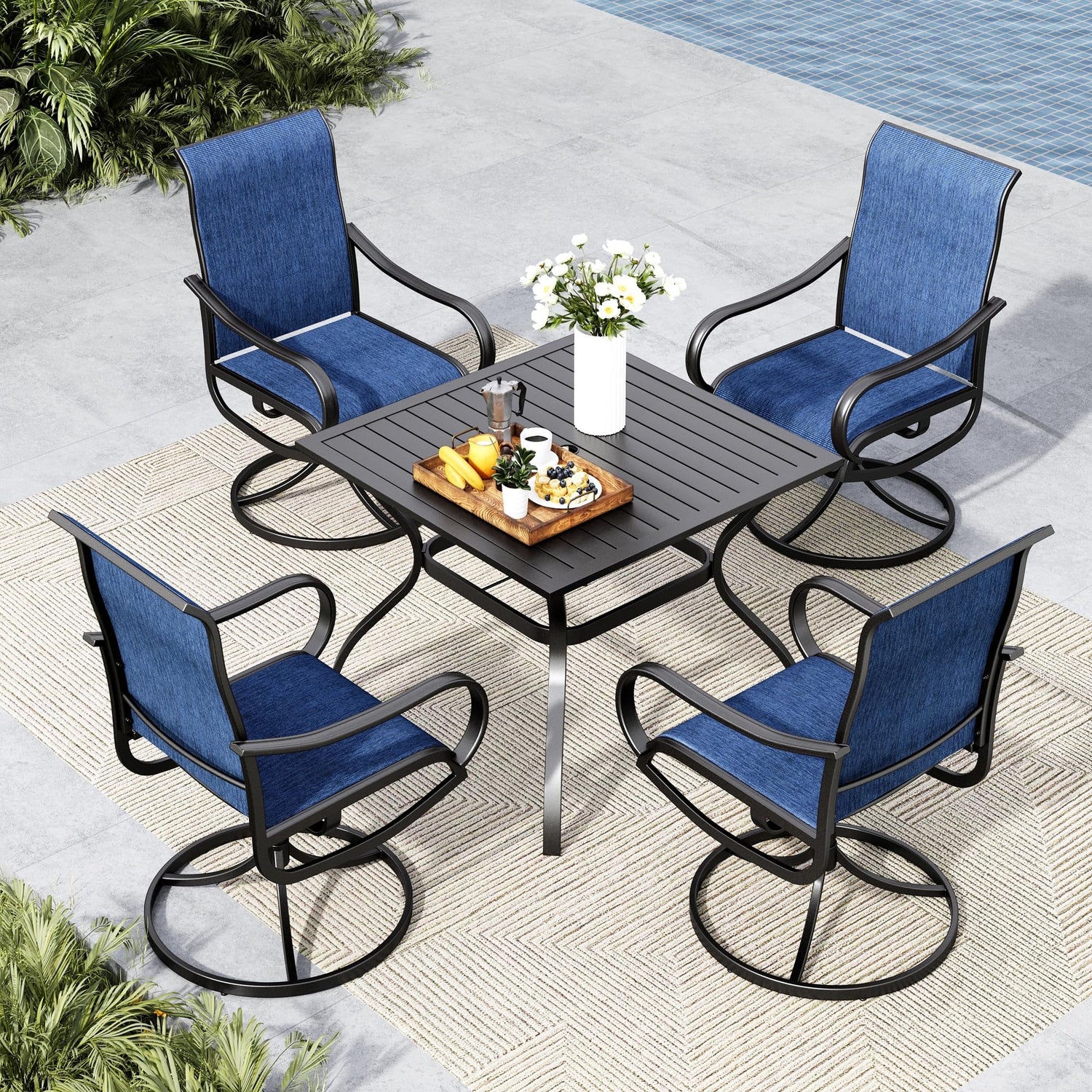 MFSTUDIO Patio Table and Chairs Set of 4, Outdoor Dining Set with Metal Table and Swivel Chairs, 5 Piece Patio Furniture Set for Deck/Backyard/Poolside/Garden