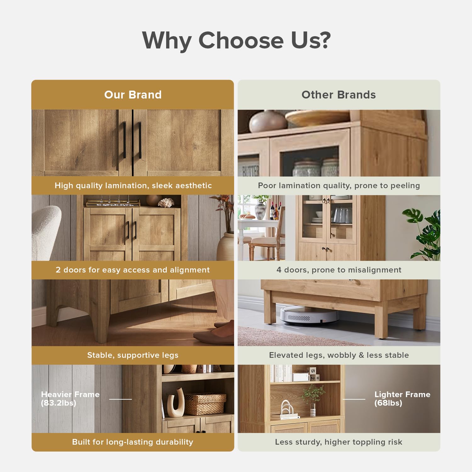 - Unique design: Boasting a unique arched design, farmhouse paneled frame design, soft-closing doors and classy contrasting handles, it is meticulously crafted with particle board and enveloped in a high-quality laminate. This ensures durability and showcases an enchanting wood grain design pattern, imparting a soft and inviting look to your space