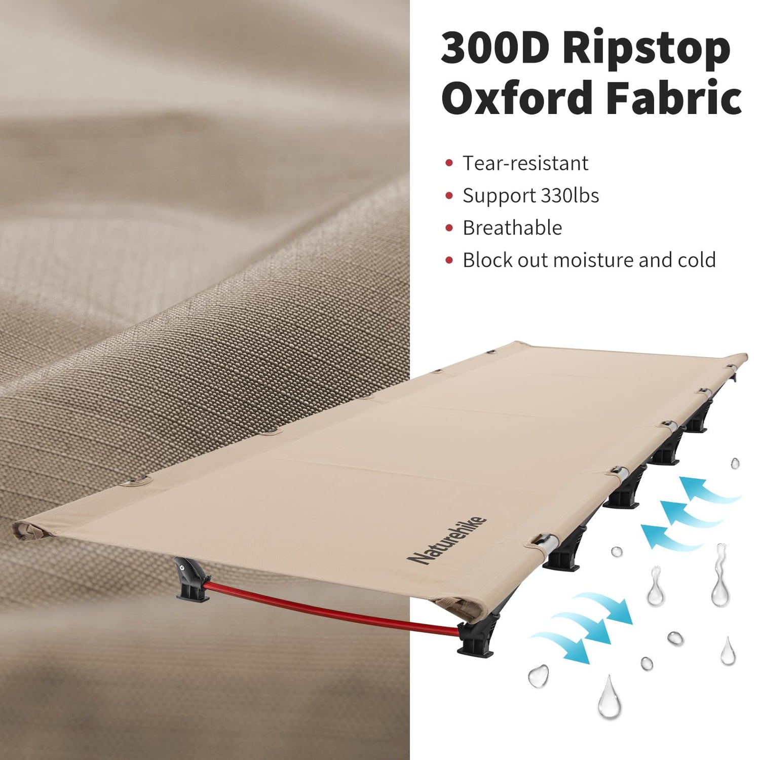Naturehike Ultralight Camping Cot, Easy to Assemble Folding Tent Cot, Compact & Protable Camping Bed for Camping, Mountaineering, & Hiking, Supports 330lbs with Carry Bag, Kahki