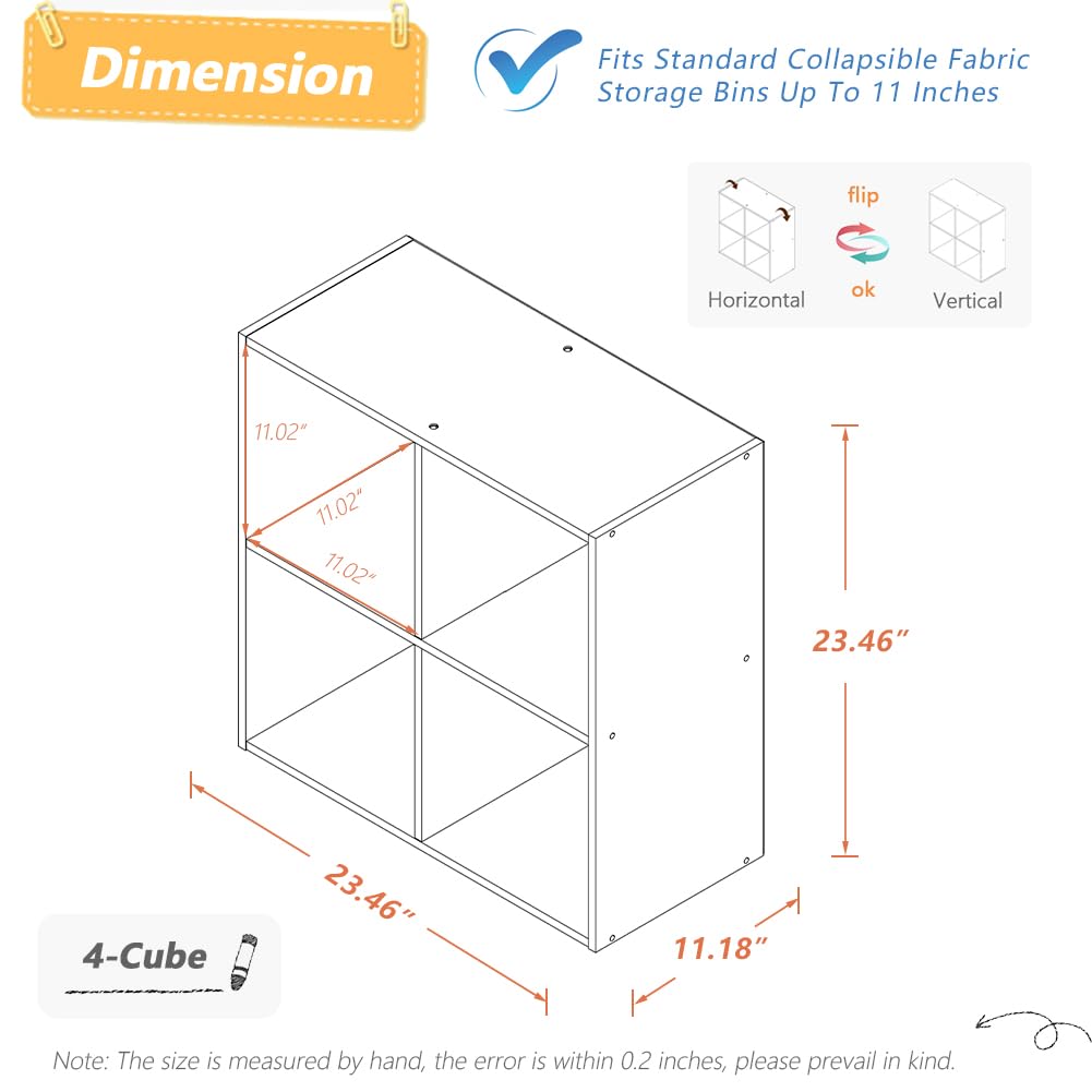 NELYE 4 Cube Organizer Bookcase - Fabric Storage Bins Container, Open Shelf Simple Compartments Bookshelf, Oak