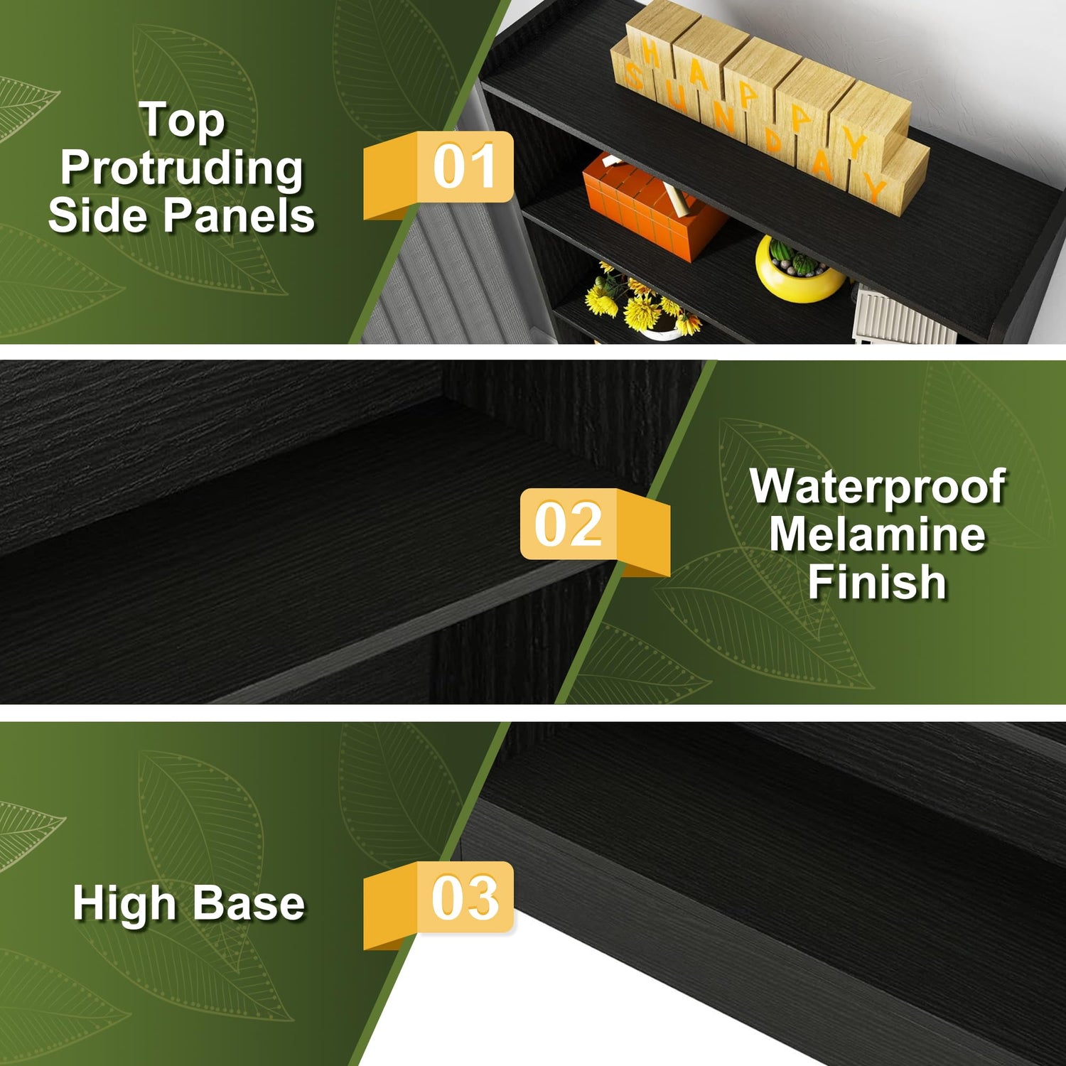 - Safe Anti-Dumping Kit: Anti-tip kits are added to fix the bookcase into the wall stably, preventing it from falling down. And the protruding side panels at the top can effectively prevent items from falling.