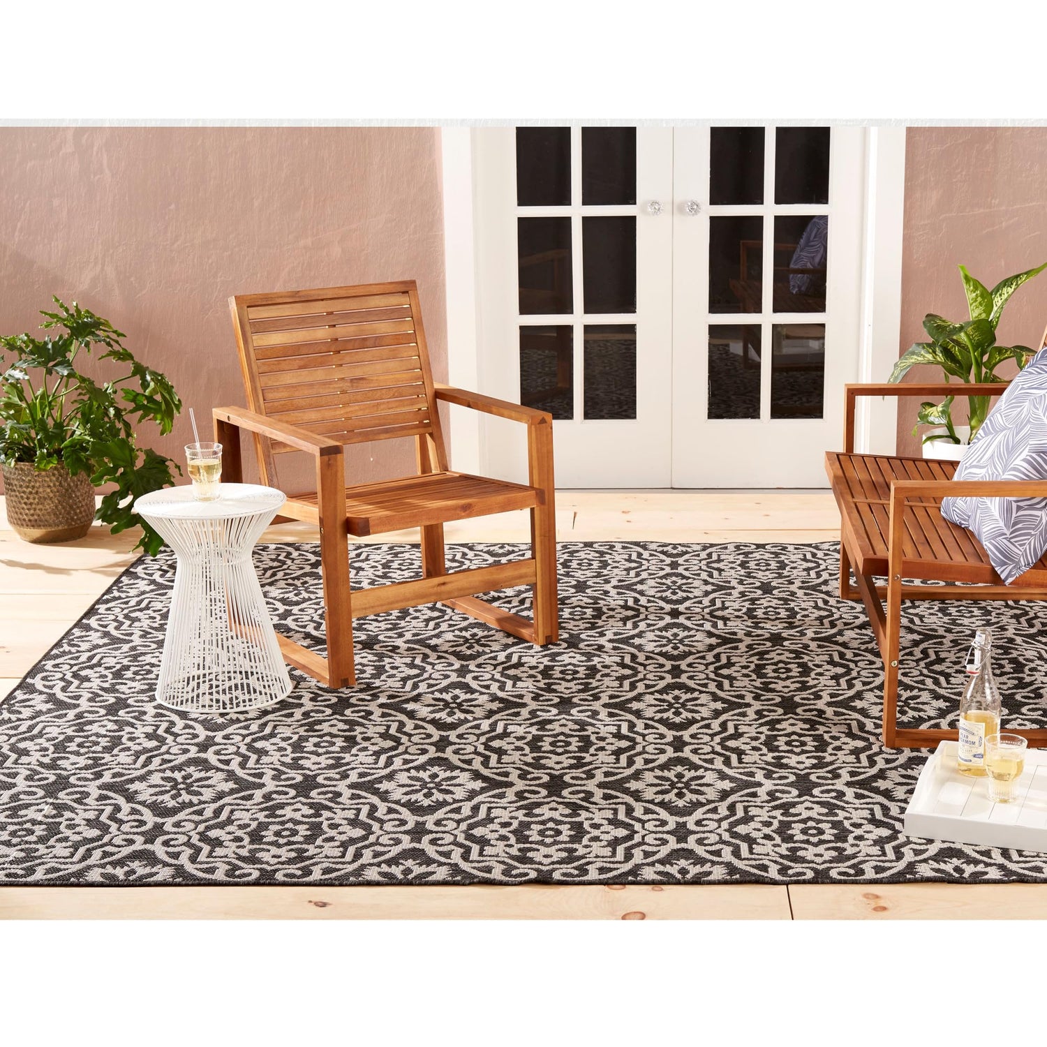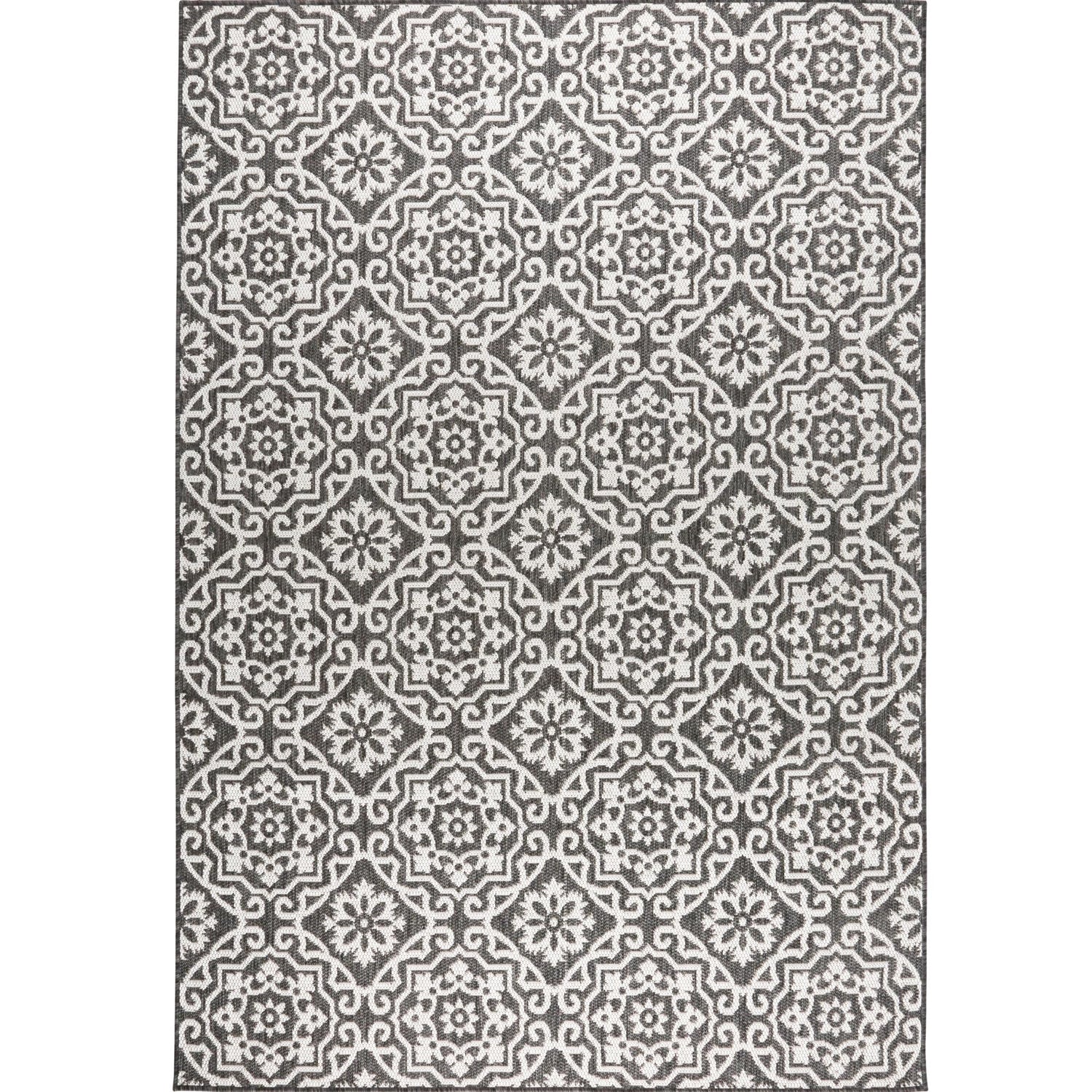 Details: NICOLE MILLER NEW YORK Patio Country Julia Transitional Geometric Indoor/Outdoor Area Rug, Black/Grey, 3'11"x5'2"