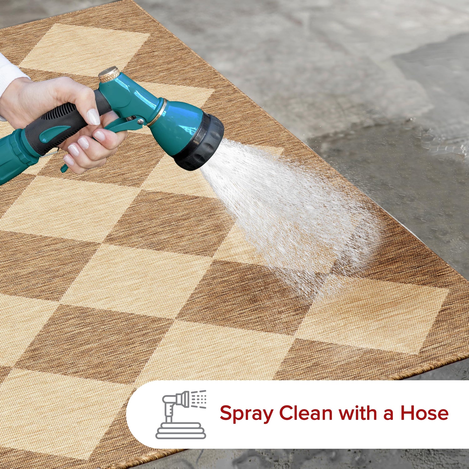 - Outdoor Rug Care Instructions: Easy to care for, simply shake out your outdoor rug to remove any light dirt or debris and spray your area rug with a hose for stubborn stains. This is the perfect patio rug or front porch rug to elevate your home.